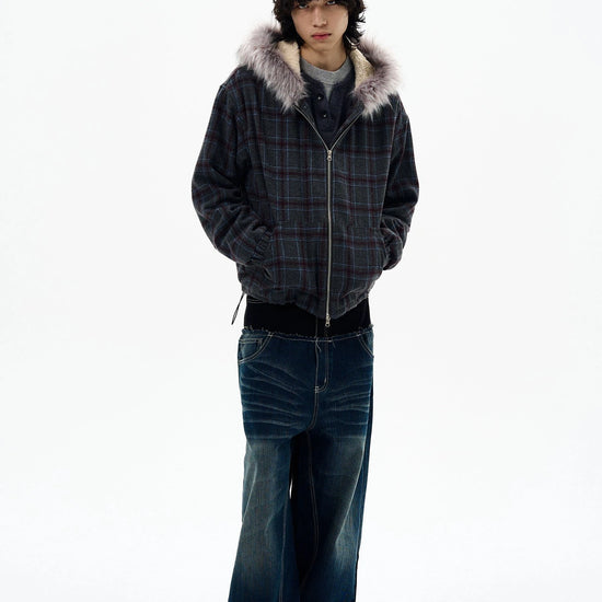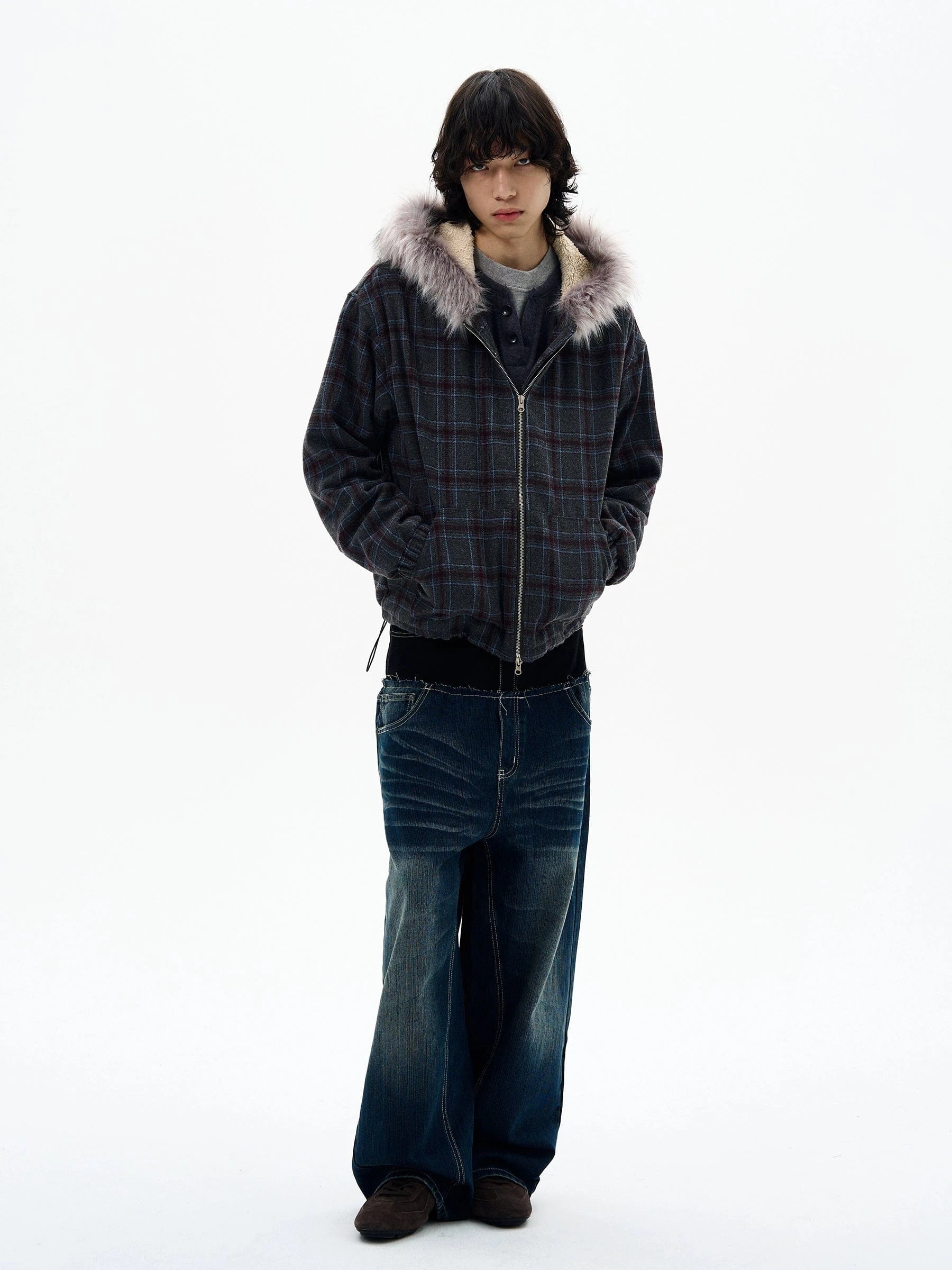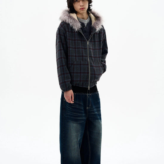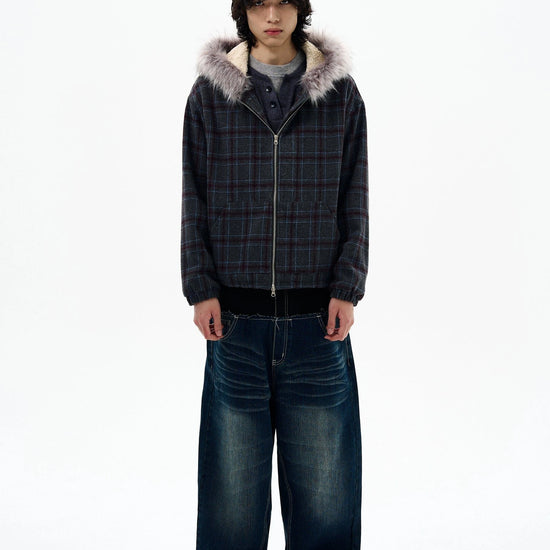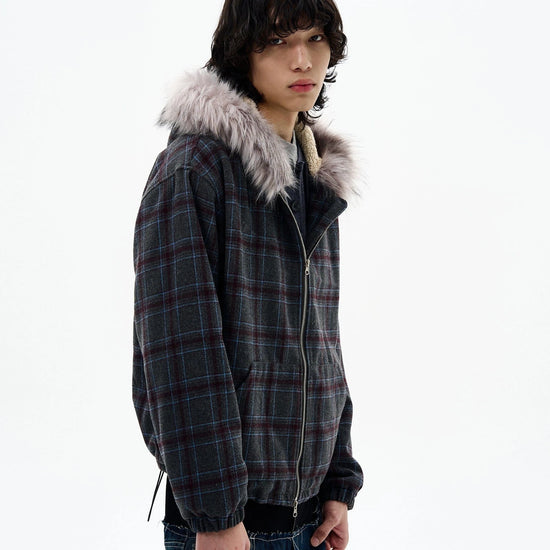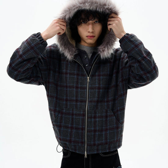 RT No. 32505 PLAID FUR ZIP HOODIE