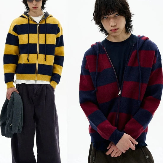 A striped knitwear zip hoodie that speaks to timeless craft and quiet provenance. Built for longevity, it blends restrained detailing with everyday versatility. A thoughtful addition for collectors who value heritage, subtle warmth, and enduring style.