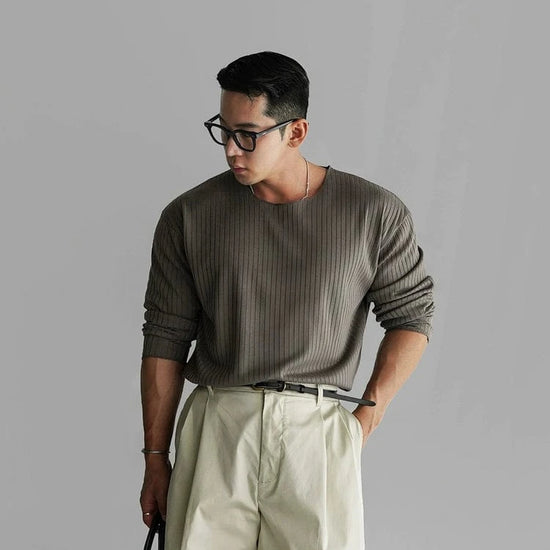 RT No. 11061 KNITTED HENRY COLLAR LONGSLEEVE SHIRT