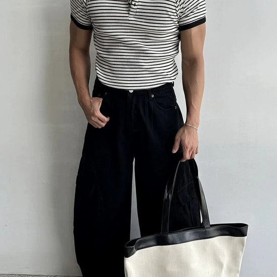 RT No. 7002 WASHED BLACK WIDE STRAIGHT DENIM JEANS