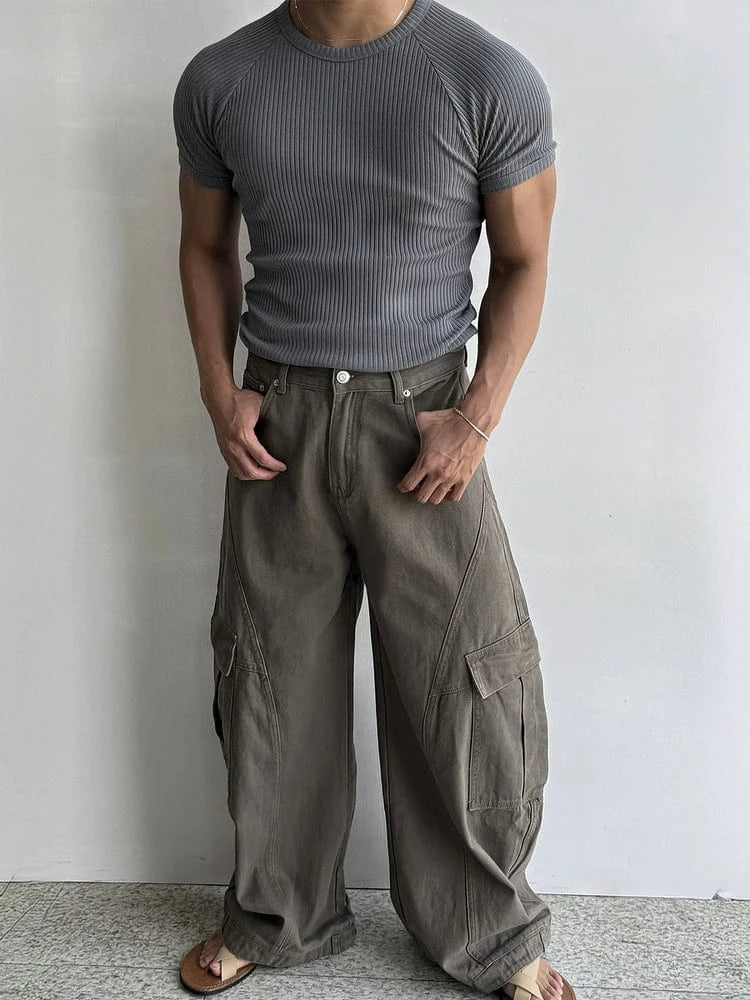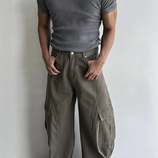 RT No. 10382 DARK GRAY BAGGY STRAIGHT DENIM JEANS