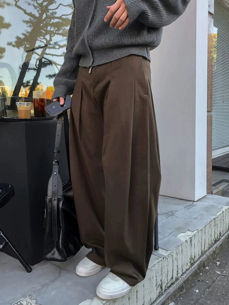 - Pleated front and straight drape create a timeless silhouette with versatile pairing for formal or casual wear.