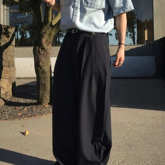 RT No. 32610 PLEATED STRIPED WIDE STRAIGHT PANTS
