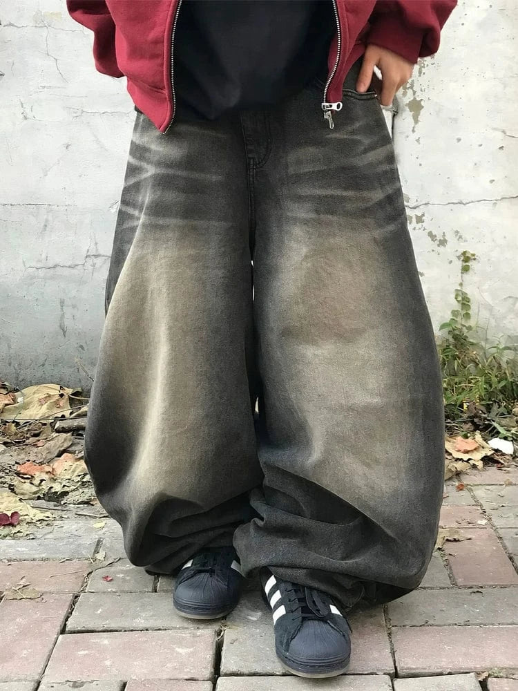 RT No. 9601 WASHED GRAY BAGGY JEANS