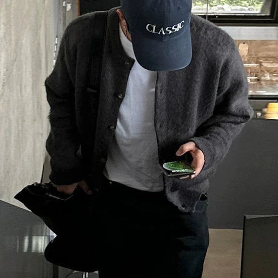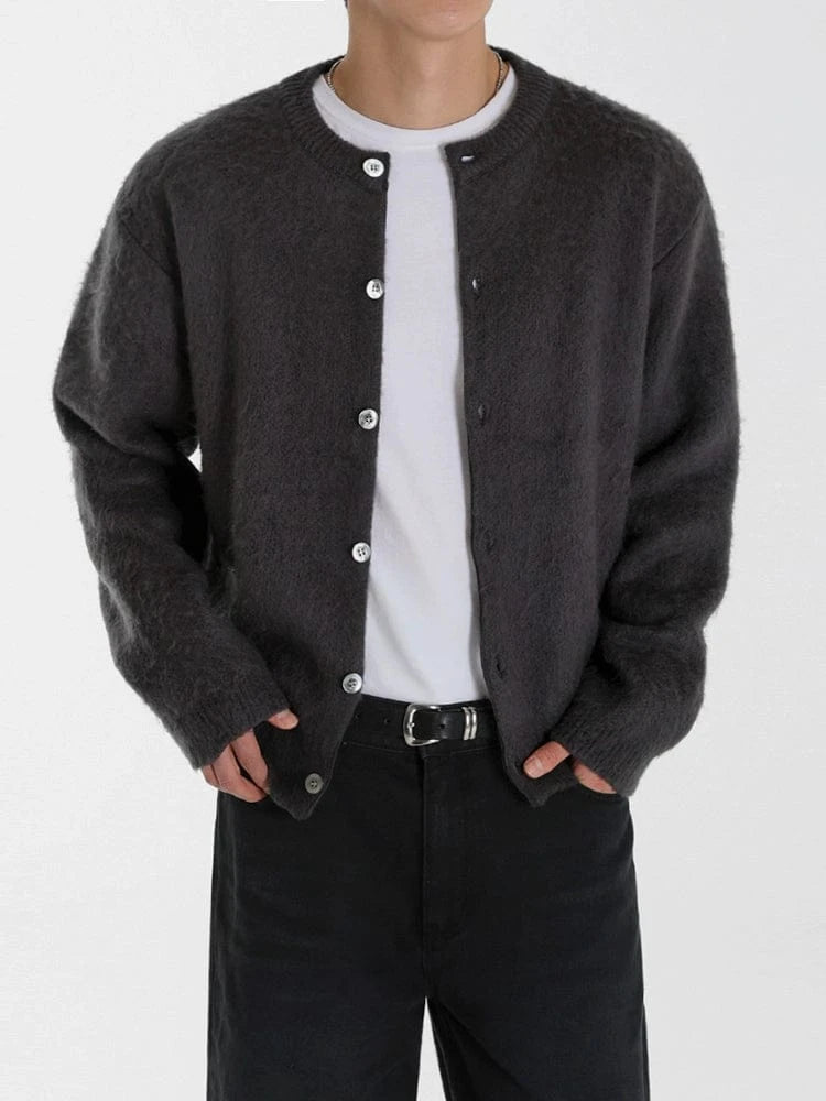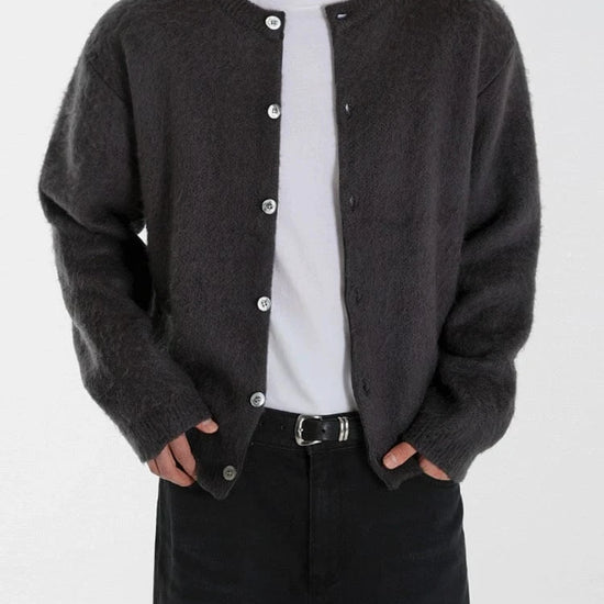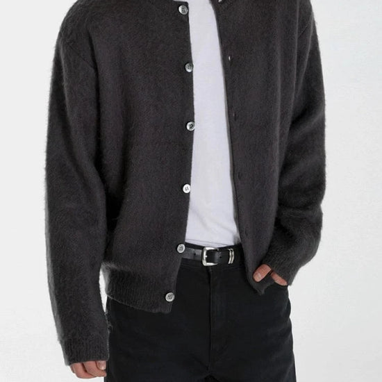 This dark-gray knitwear cardigan embodies quiet luxury, rooted in enduring craft and refined materials that endure beyond seasons.