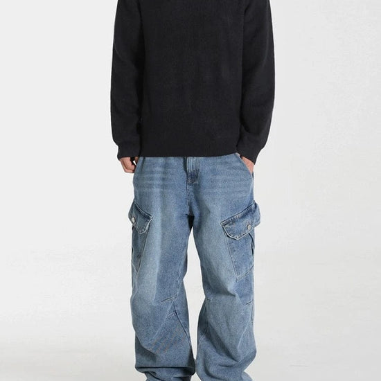 RT No. 12059 WASHED BLUE RELAX STRAIGHT DENIM JEANS