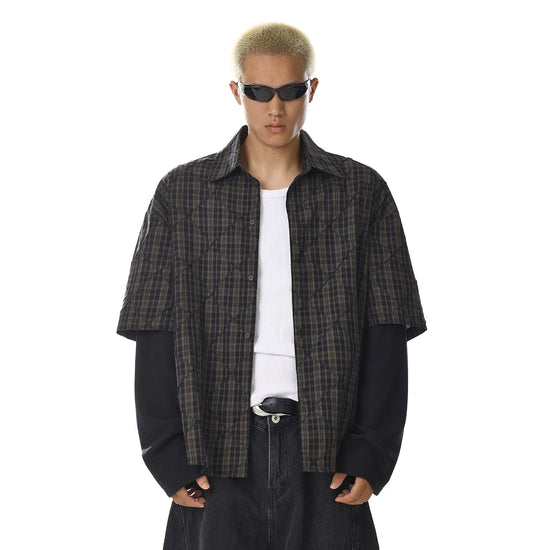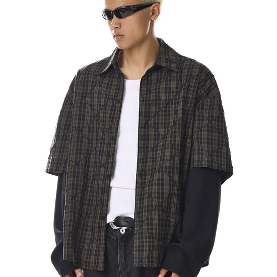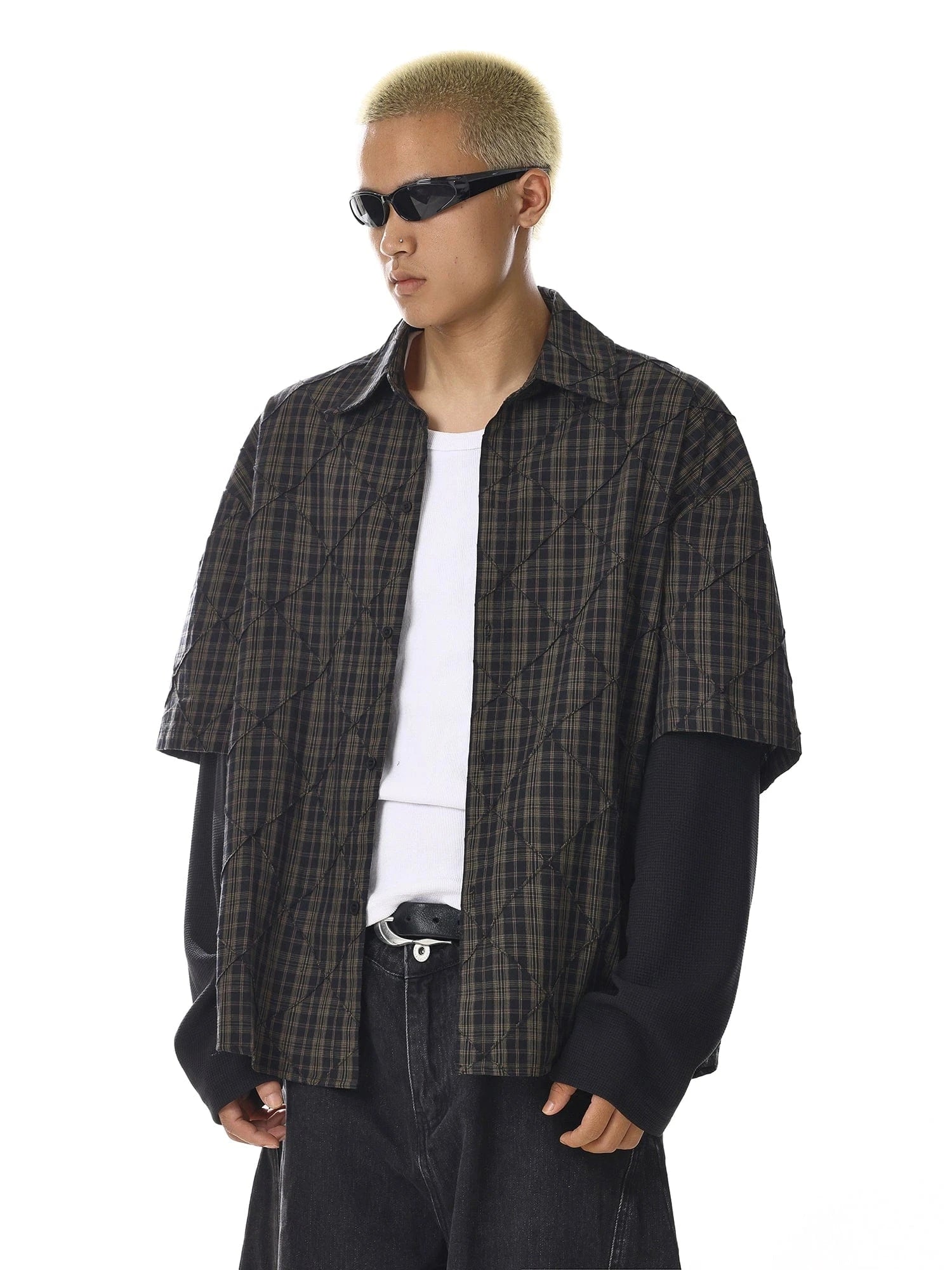 - Two-piece plaid shirt with long sleeves, crafted for versatile layering.