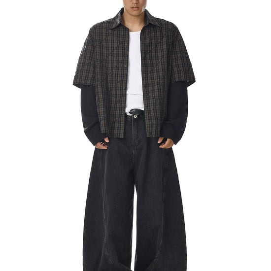 RT No. 7002 WASHED BLACK WIDE STRAIGHT DENIM JEANS