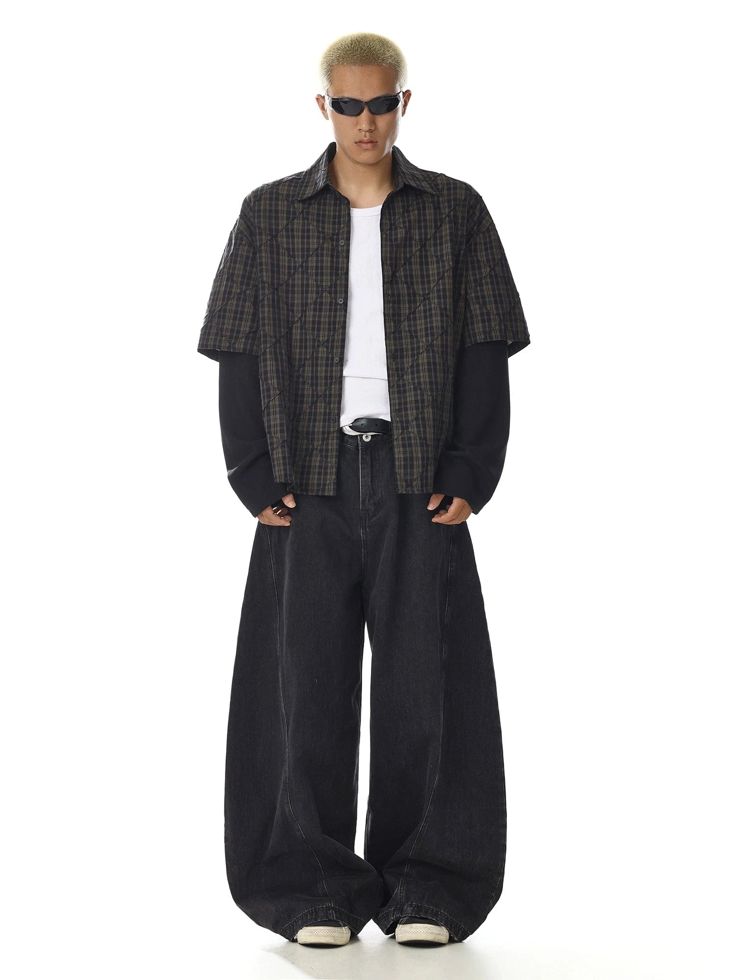 RT No. 10382 DARK GRAY BAGGY STRAIGHT DENIM JEANS
