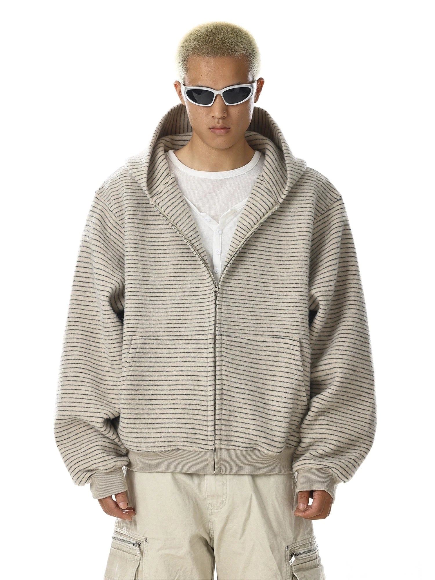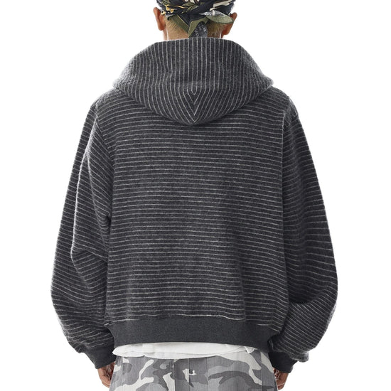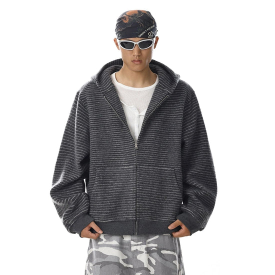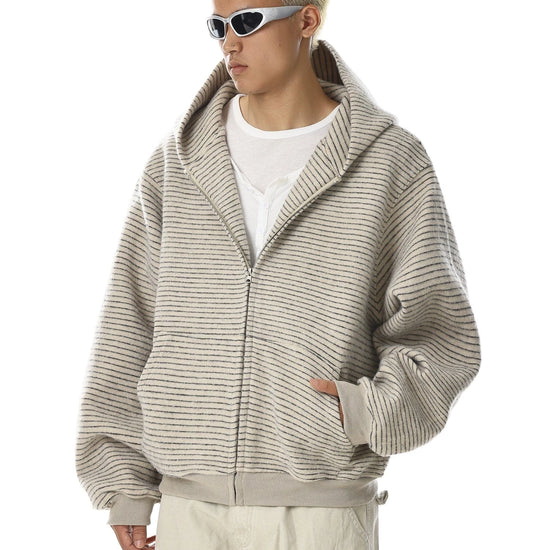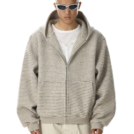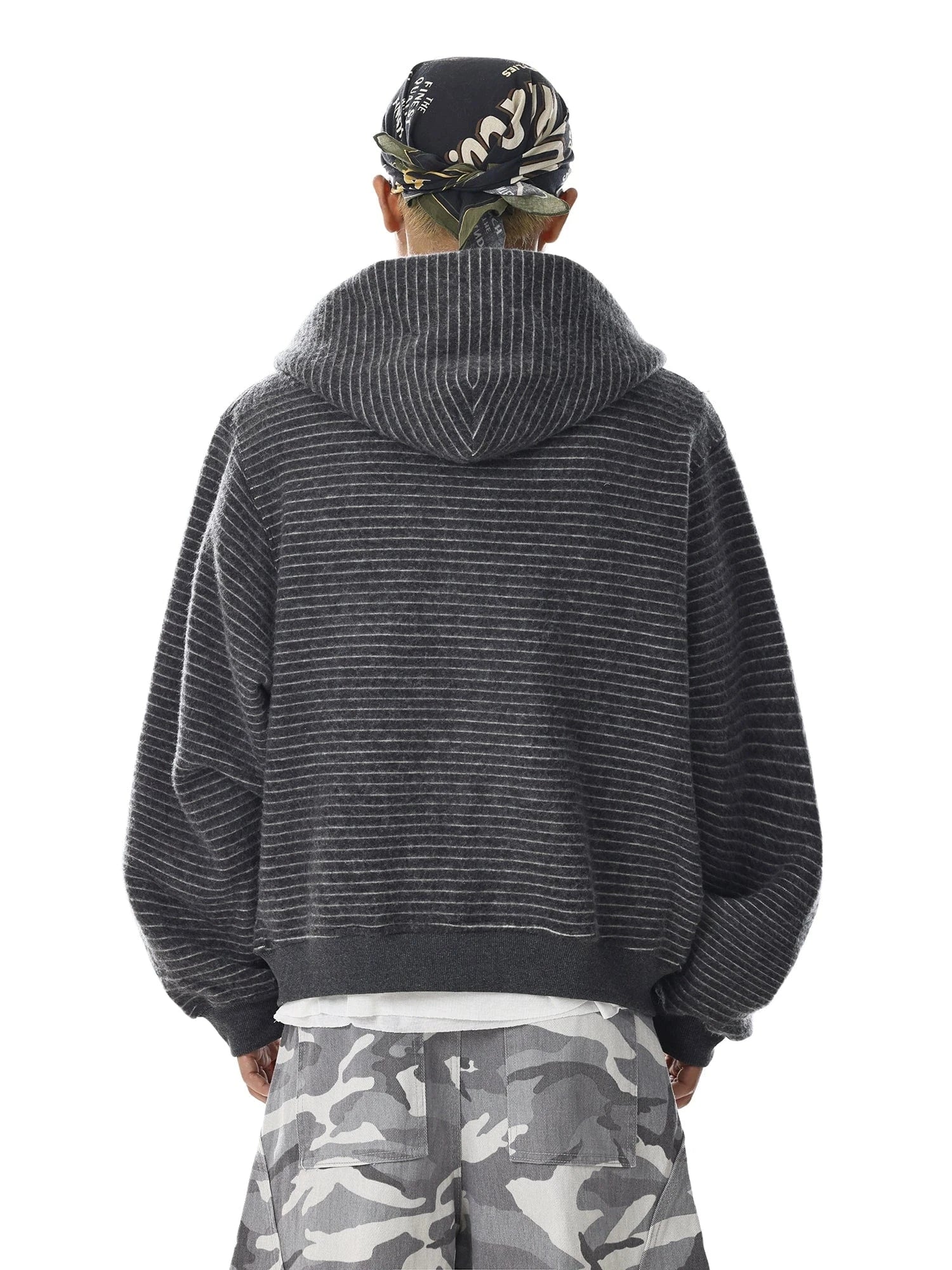 This striped zip hoodie embodies restrained luxury through heritage craftsmanship, provenance, and premium materials, delivering timeless value and collector appeal.