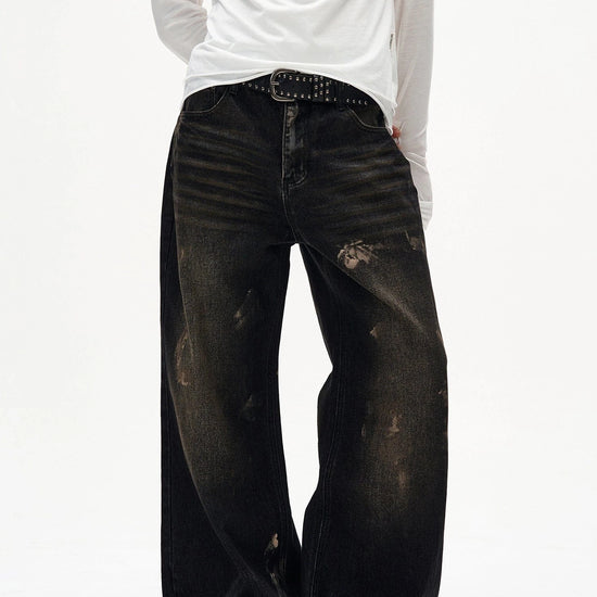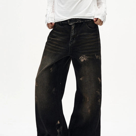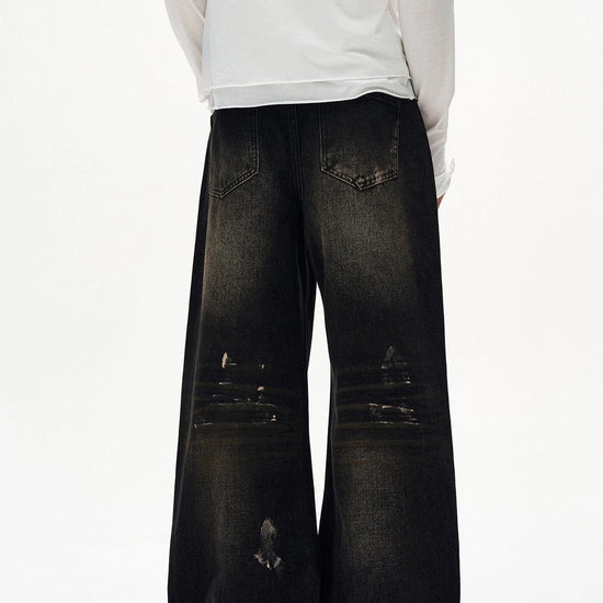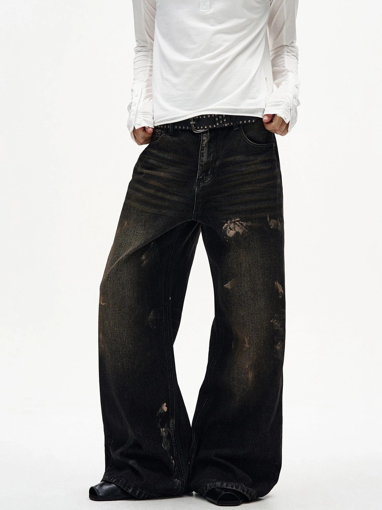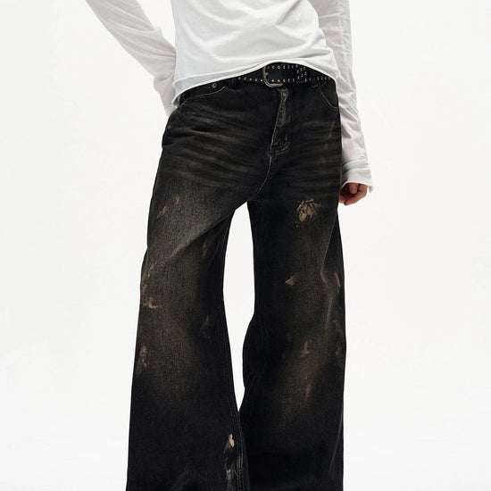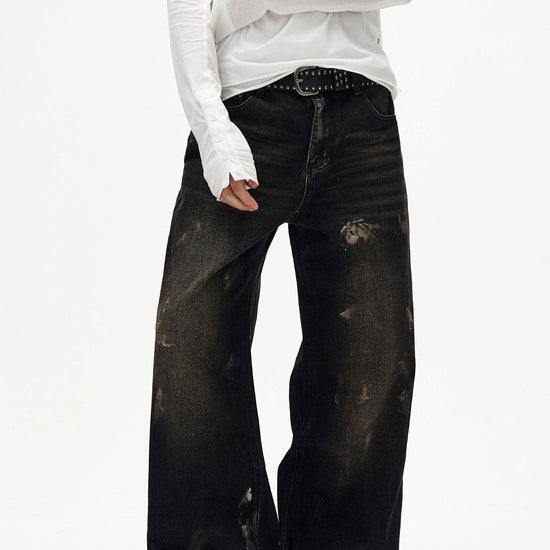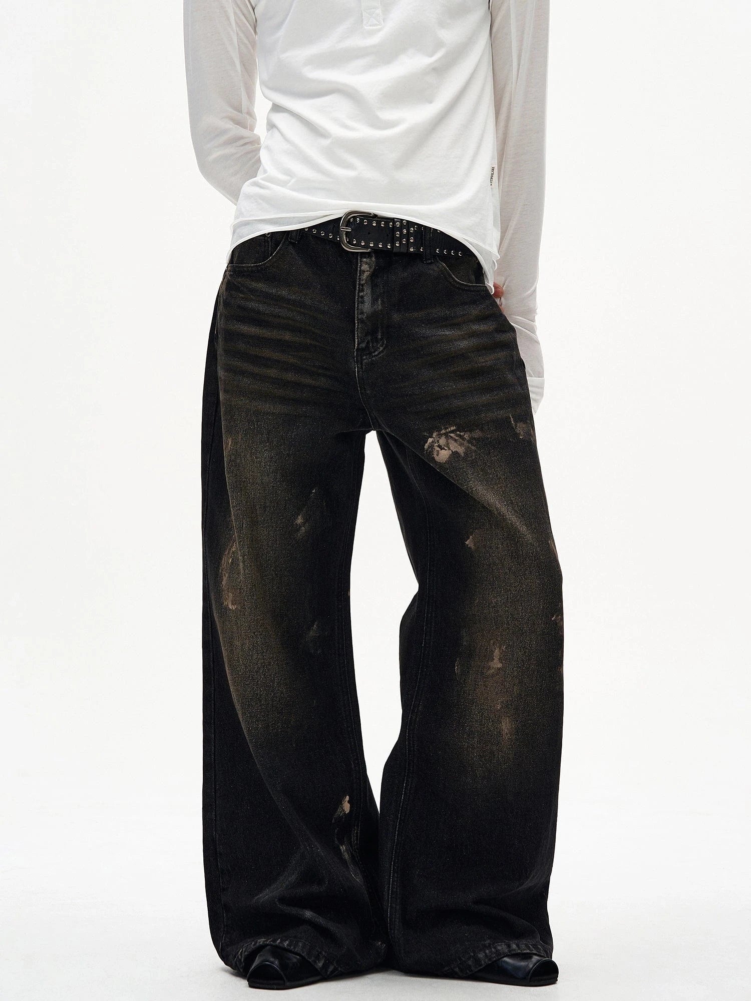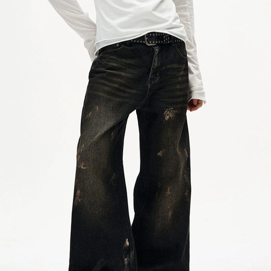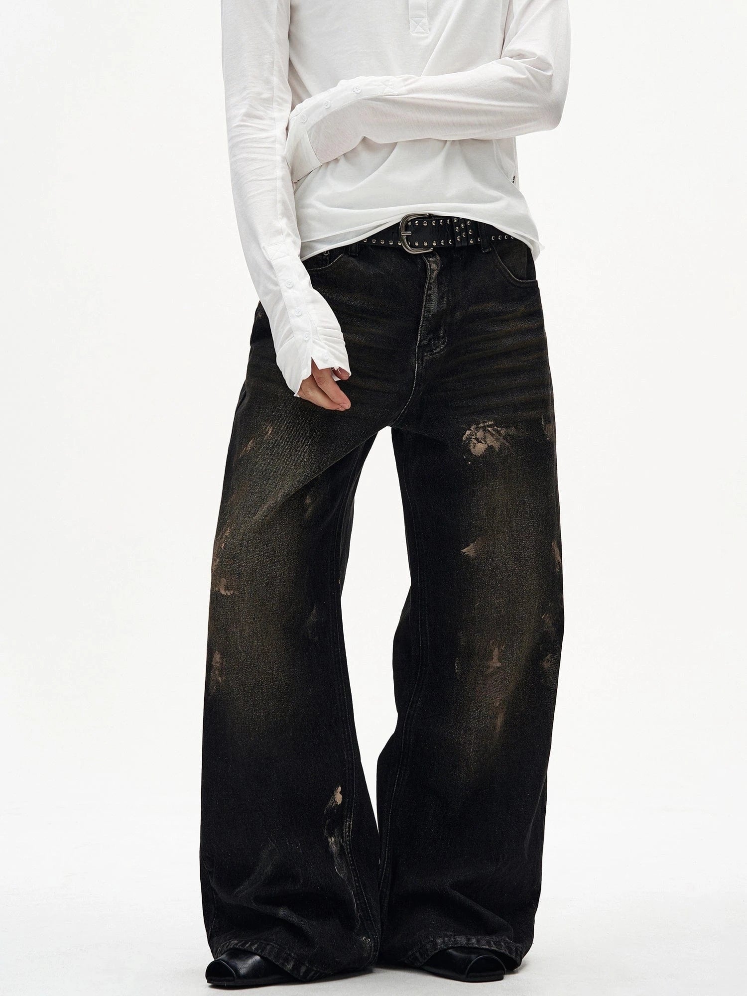 RT No. 7002 WASHED BLACK WIDE STRAIGHT DENIM JEANS