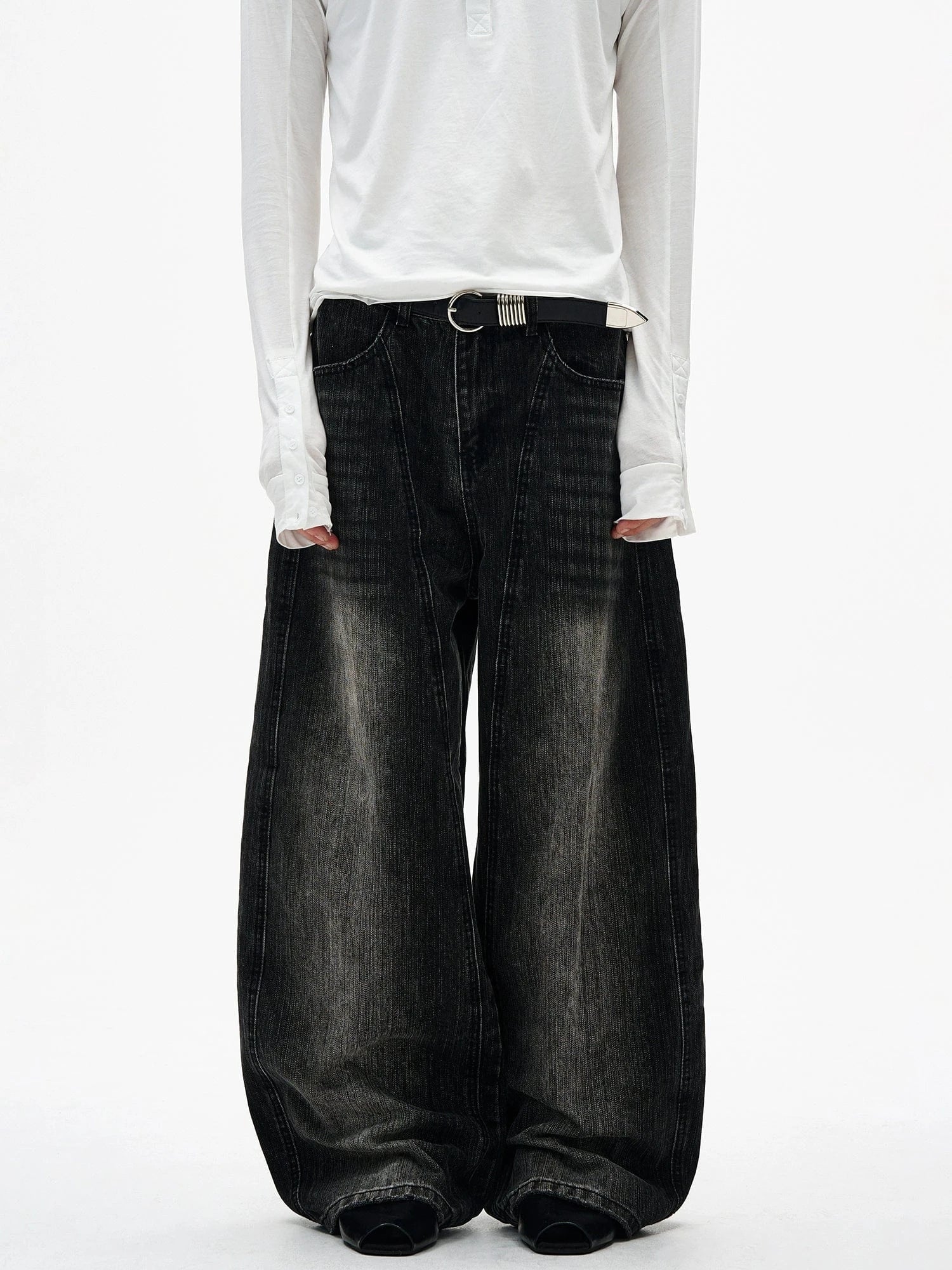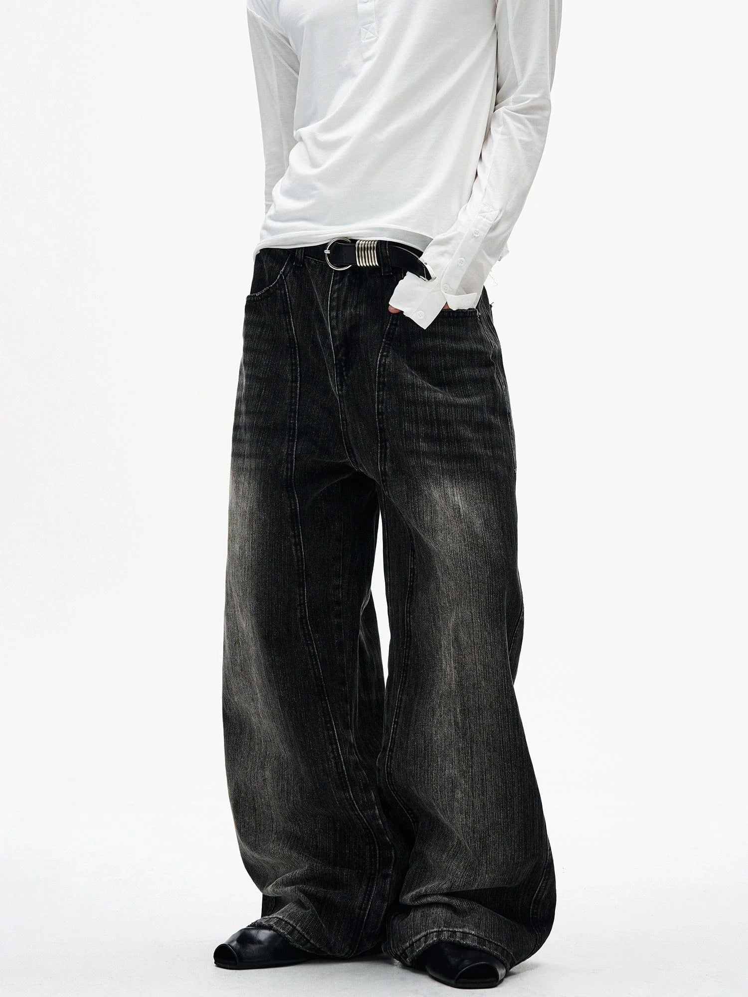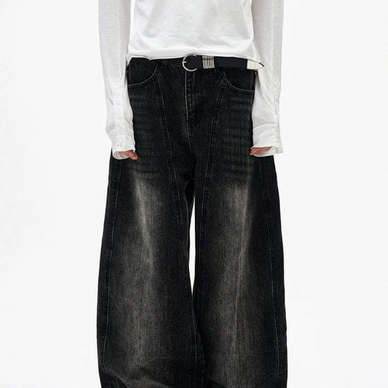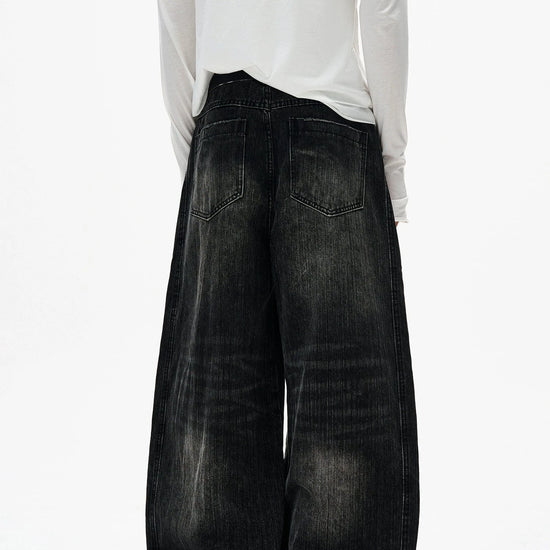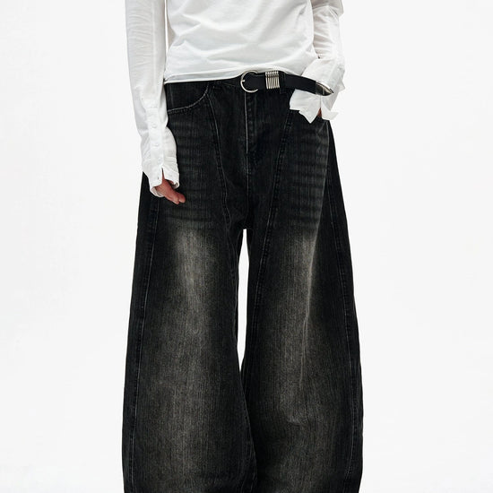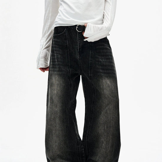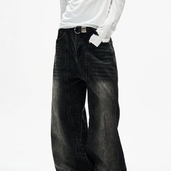 RT No. 7002 WASHED BLACK WIDE STRAIGHT DENIM JEANS
