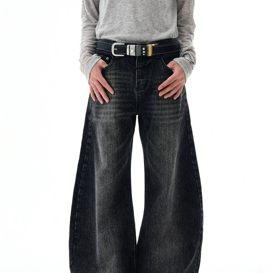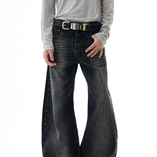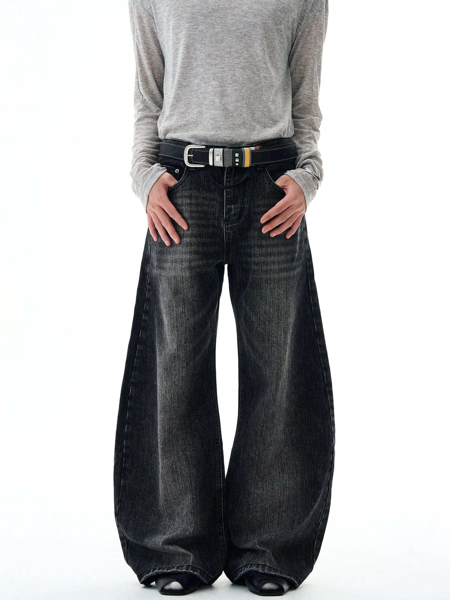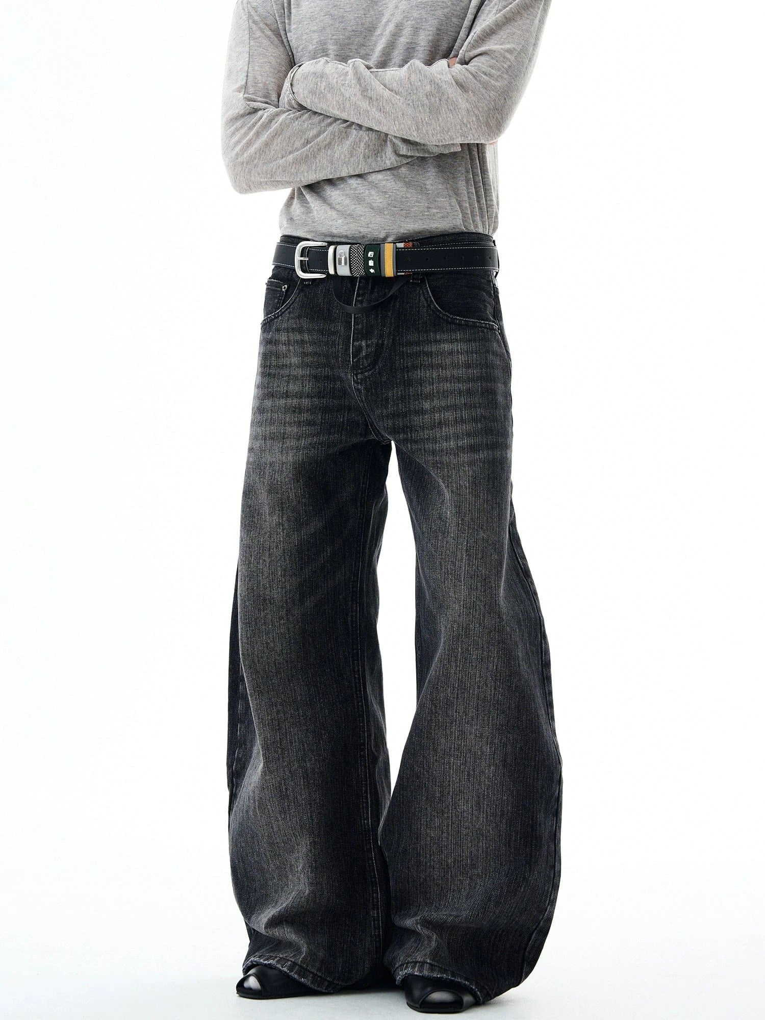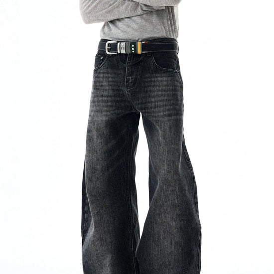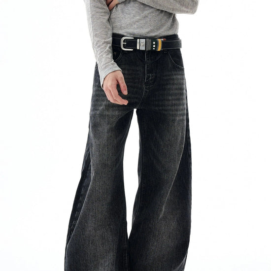 RT No. 7002 WASHED BLACK WIDE STRAIGHT DENIM JEANS