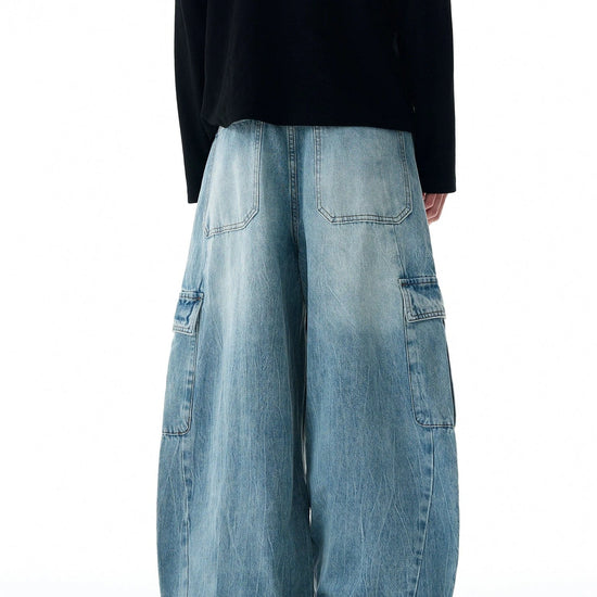 This baggy cargo denim piece embodies quiet luxury through skilled craft.