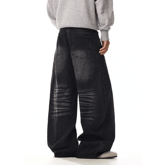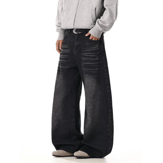 RT No. 7002 WASHED BLACK WIDE STRAIGHT DENIM JEANS