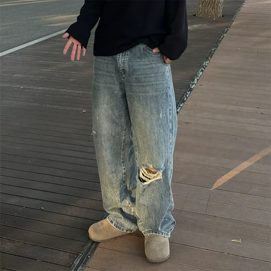 RT No. 9601 WASHED GRAY BAGGY JEANS