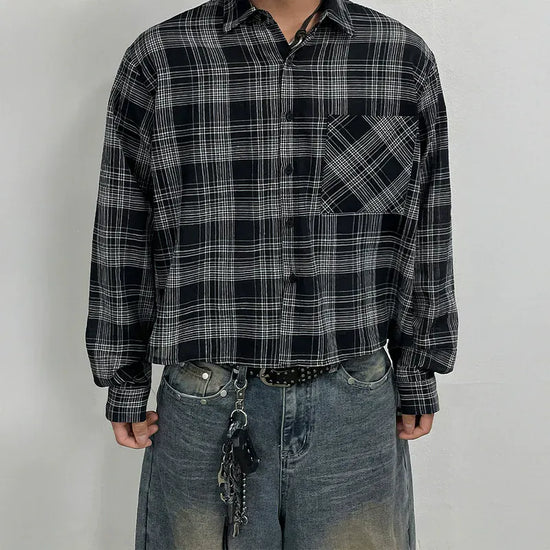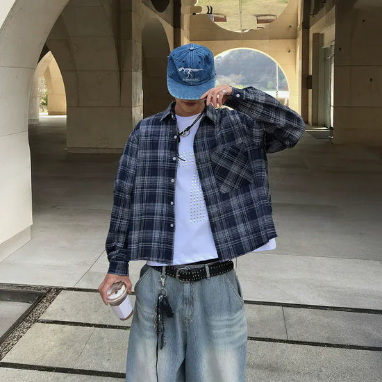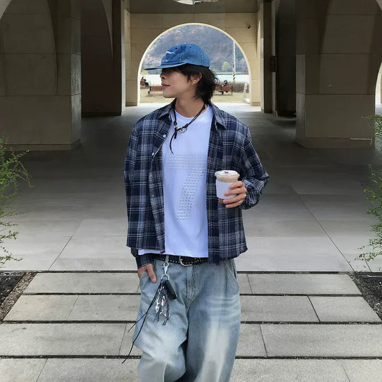 RT No. 5563 BROWN WOVEN PLAID COLLARLESS JACKET