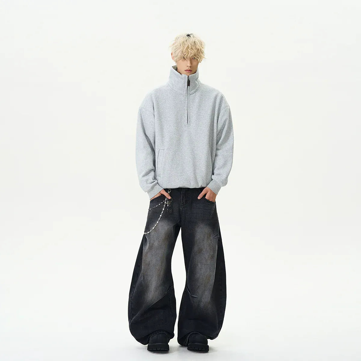 RT No. 9601 WASHED GRAY BAGGY JEANS