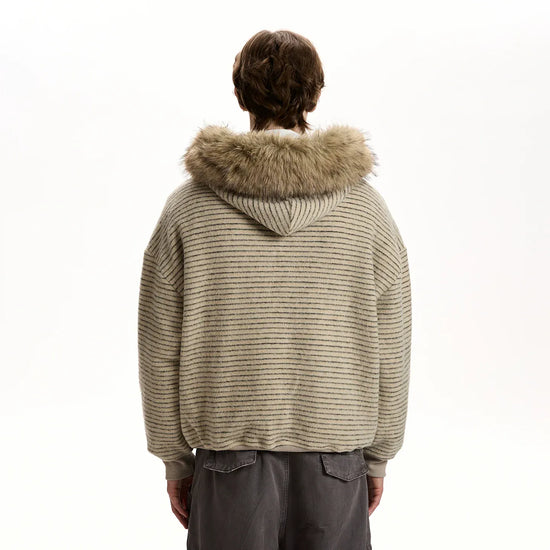 RT No. 40702 FUR COLLAR STIPED ZIPPER HOODIE
