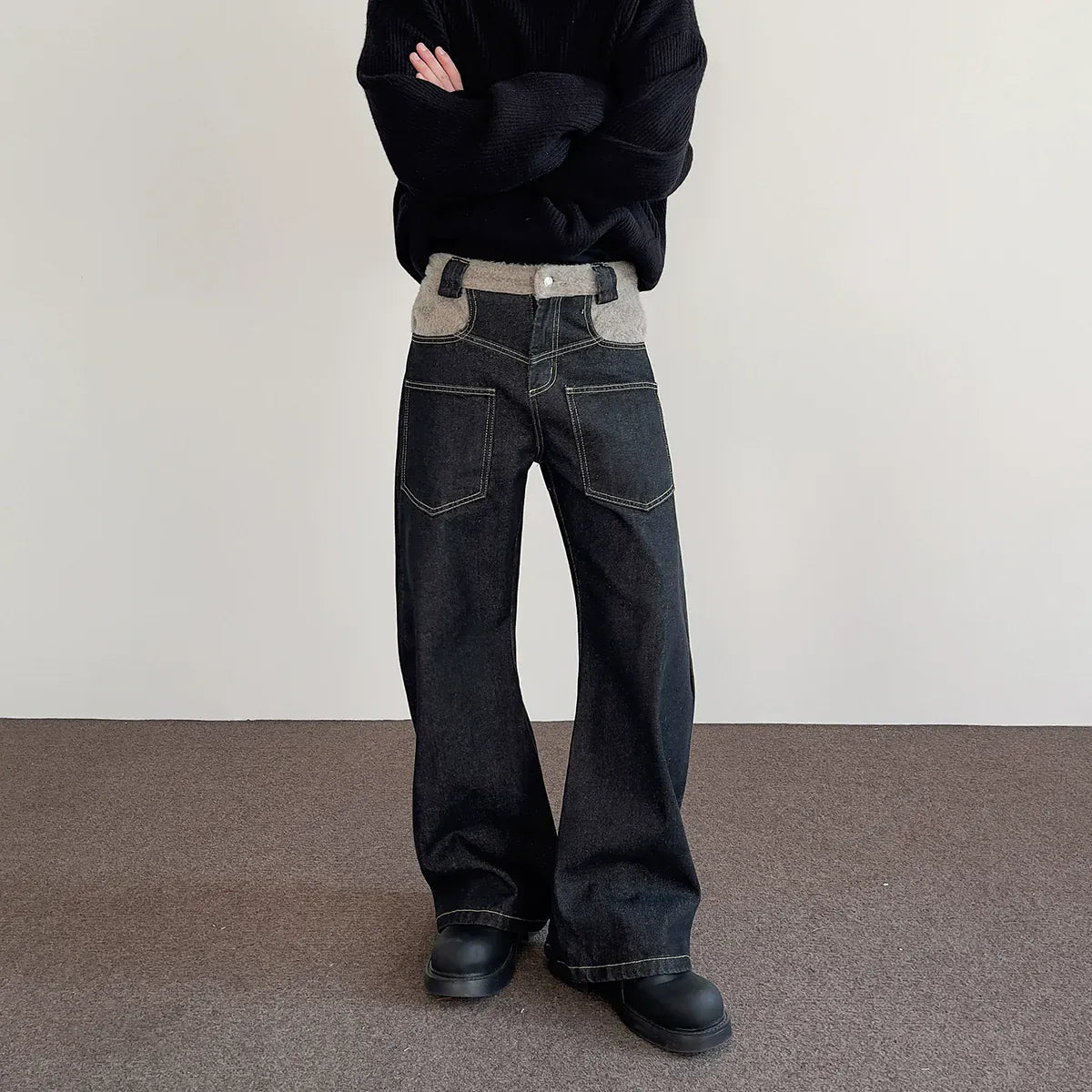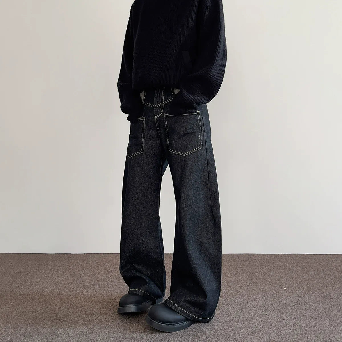 RT No. 7002 WASHED BLACK WIDE STRAIGHT DENIM JEANS