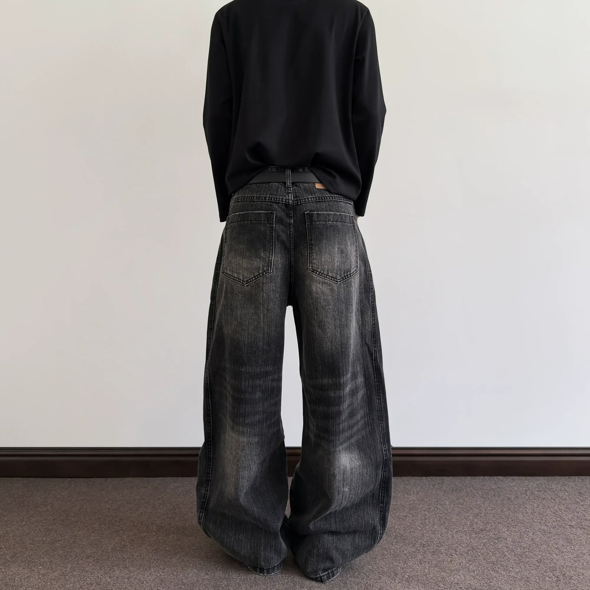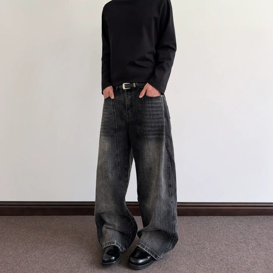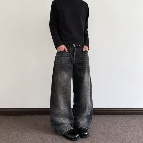 RT No. 7002 WASHED BLACK WIDE STRAIGHT DENIM JEANS