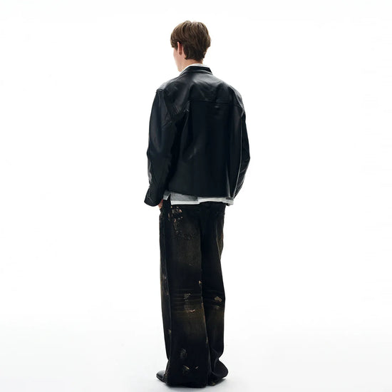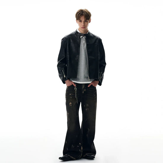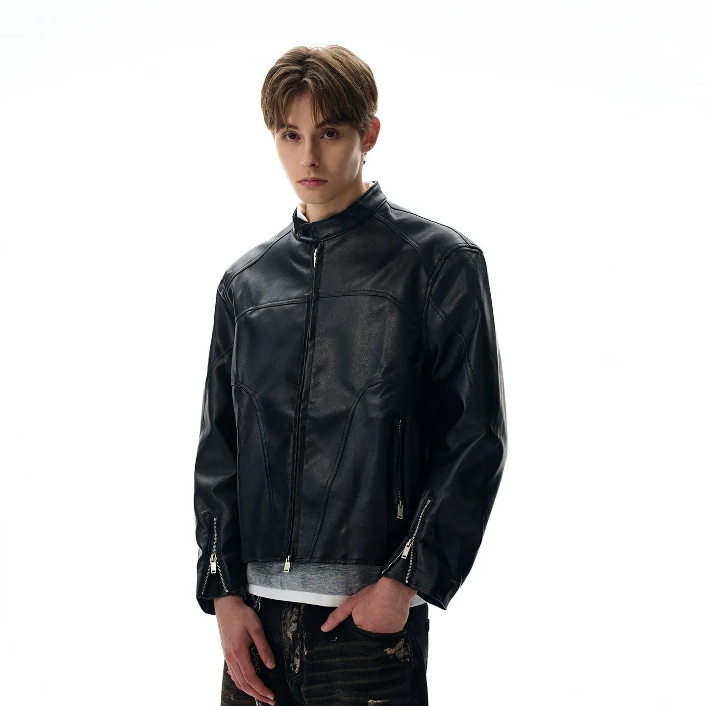 RT No. 10042 LEATHER ZIP-UP JACKET