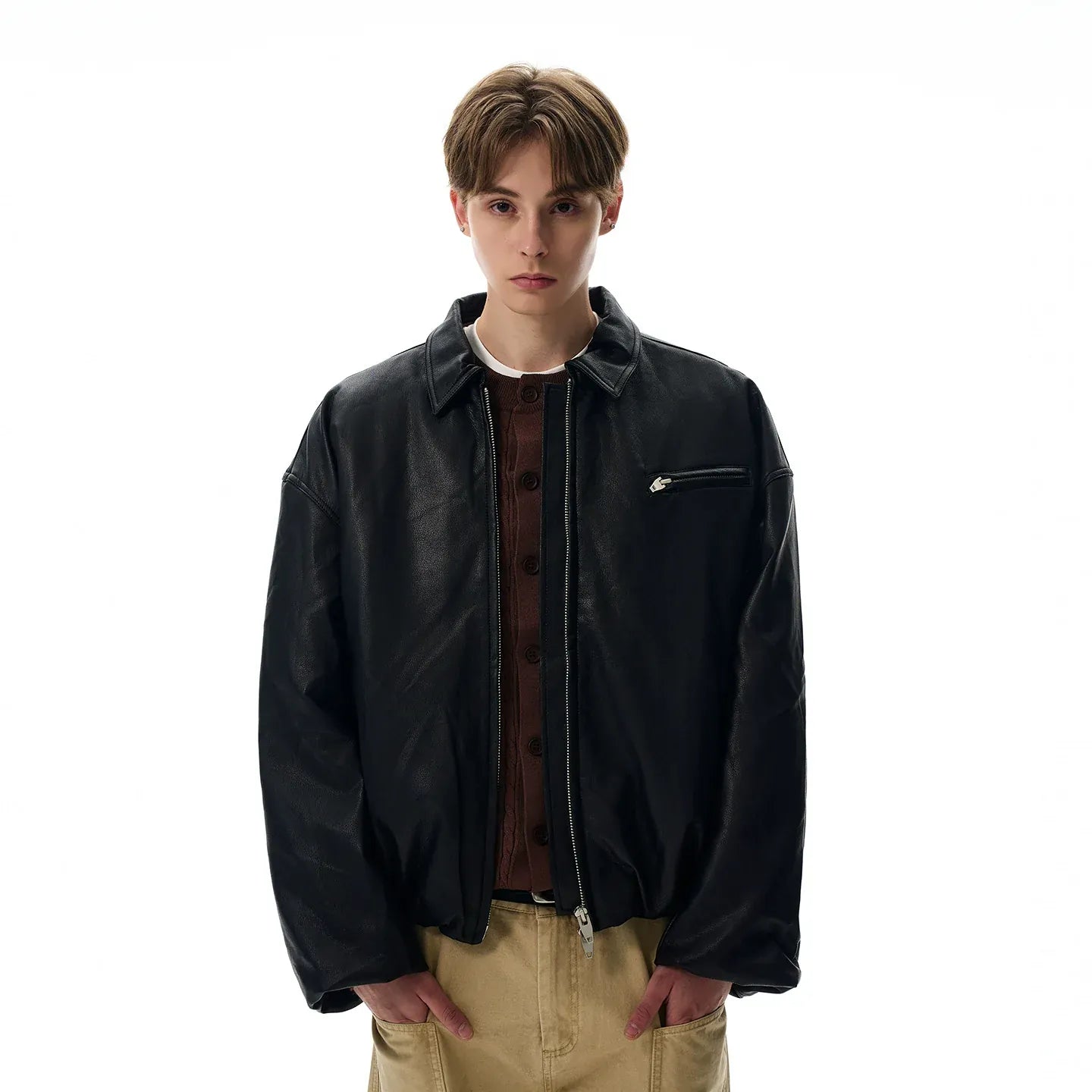 RT No. 10042 LEATHER ZIP-UP JACKET