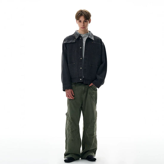 RT No. 7002 WASHED BLACK WIDE STRAIGHT DENIM JEANS