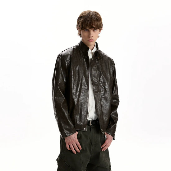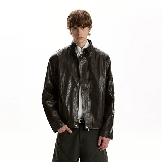 RT No. 10042 LEATHER ZIP-UP JACKET