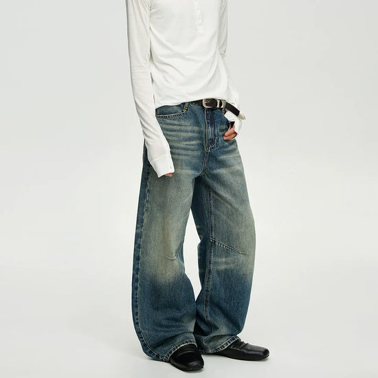 RT No. 12059 WASHED BLUE RELAX STRAIGHT DENIM JEANS