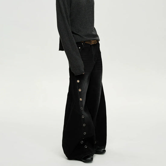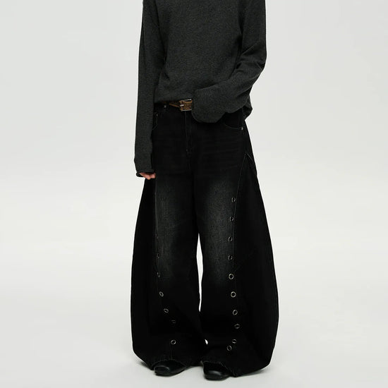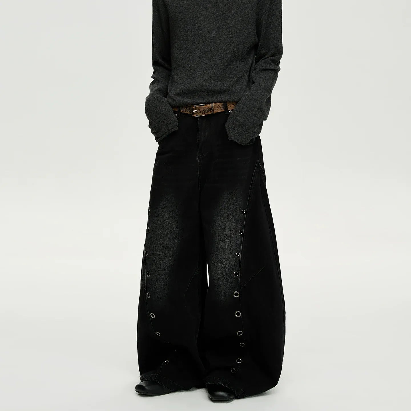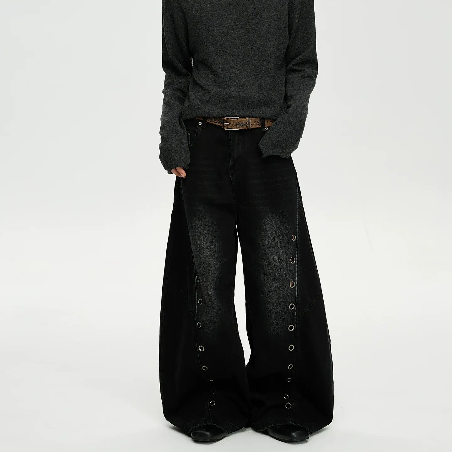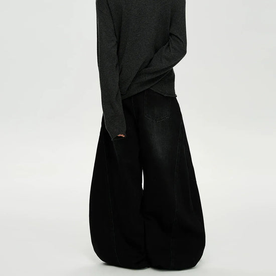RT No. 7002 WASHED BLACK WIDE STRAIGHT DENIM JEANS