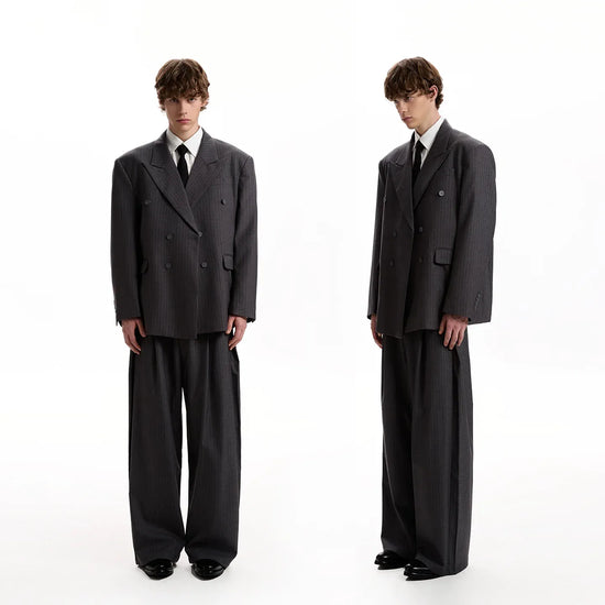 RT No. 40822 STRIPED BLAZER JACKET & PLEATED SUIT PANTS