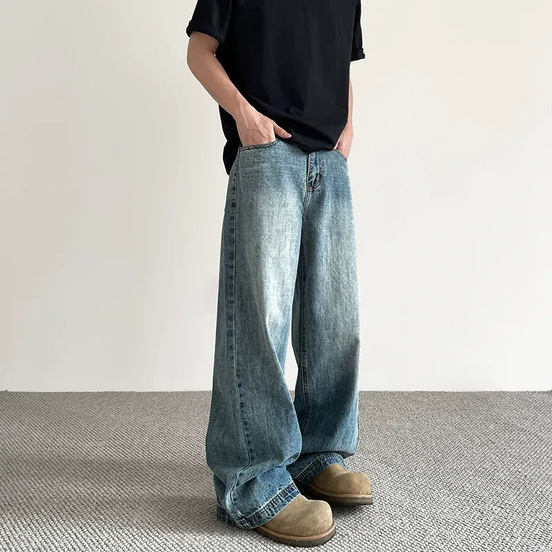 RT No. 12059 WASHED BLUE RELAX STRAIGHT DENIM JEANS