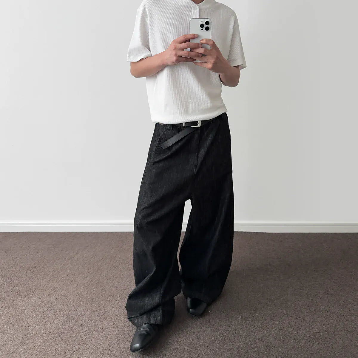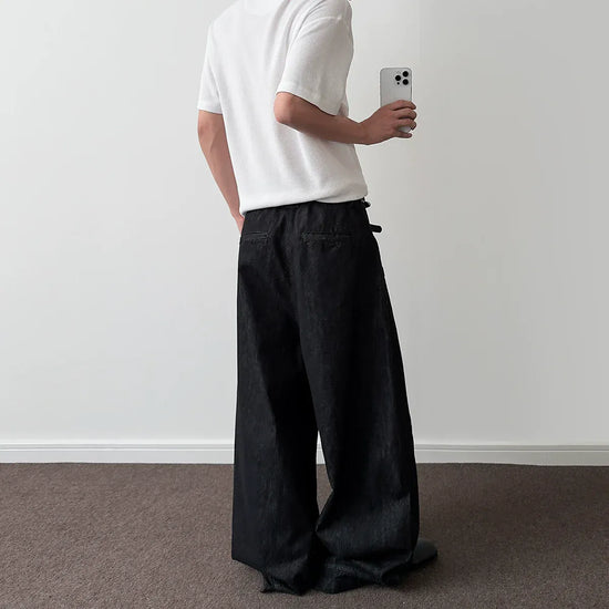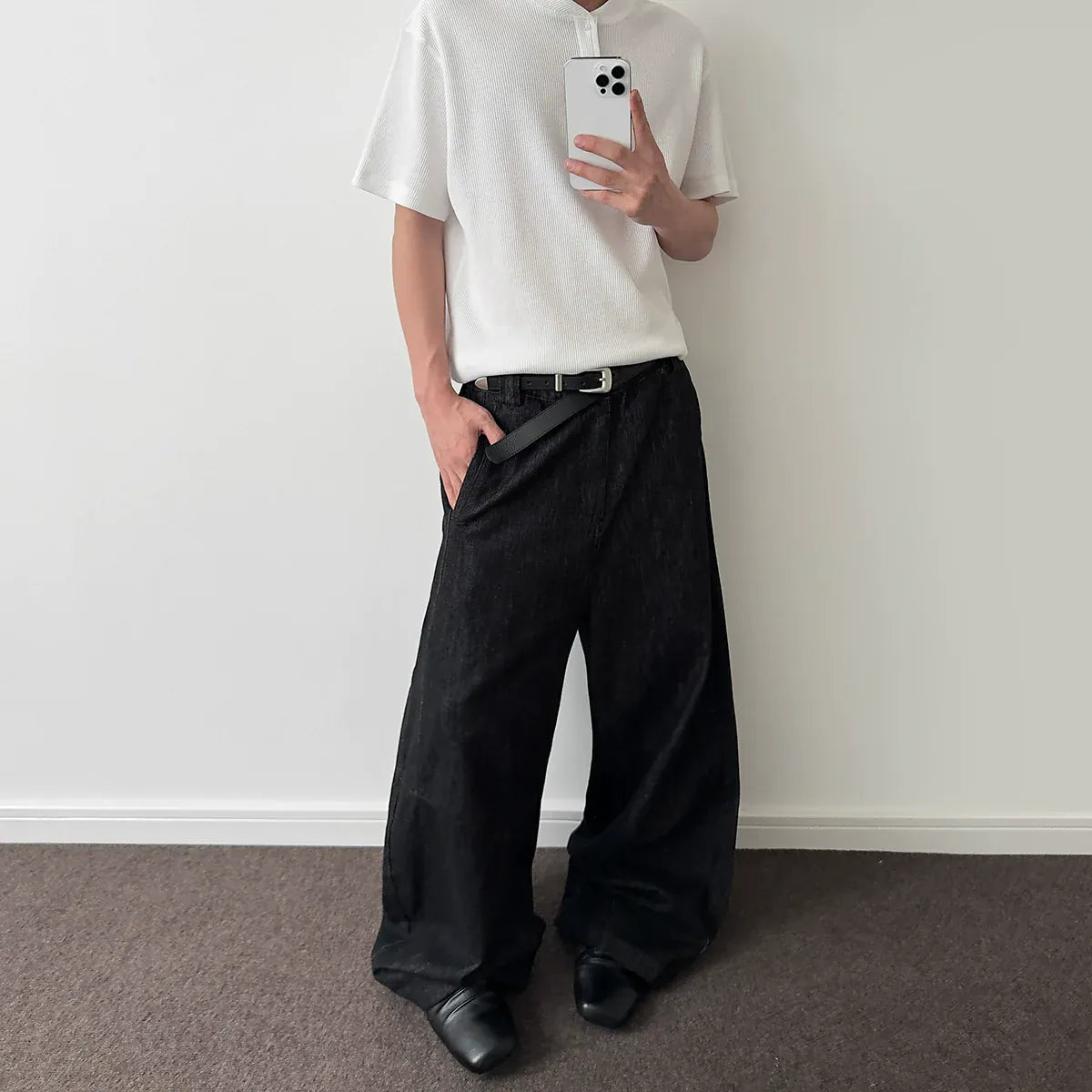 RT No. 7002 WASHED BLACK WIDE STRAIGHT DENIM JEANS