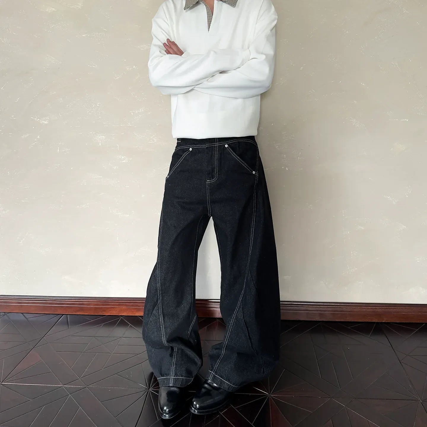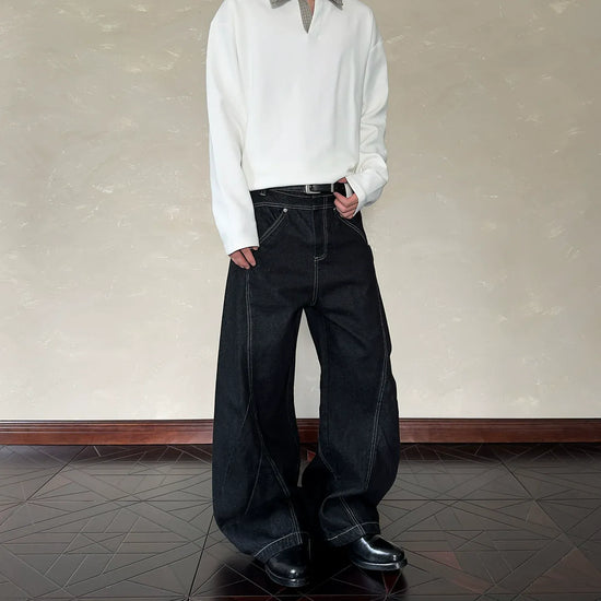 RT No. 7002 WASHED BLACK WIDE STRAIGHT DENIM JEANS