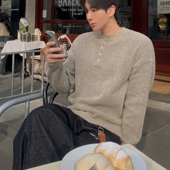 RT No. 11061 KNITTED HENRY COLLAR LONGSLEEVE SHIRT