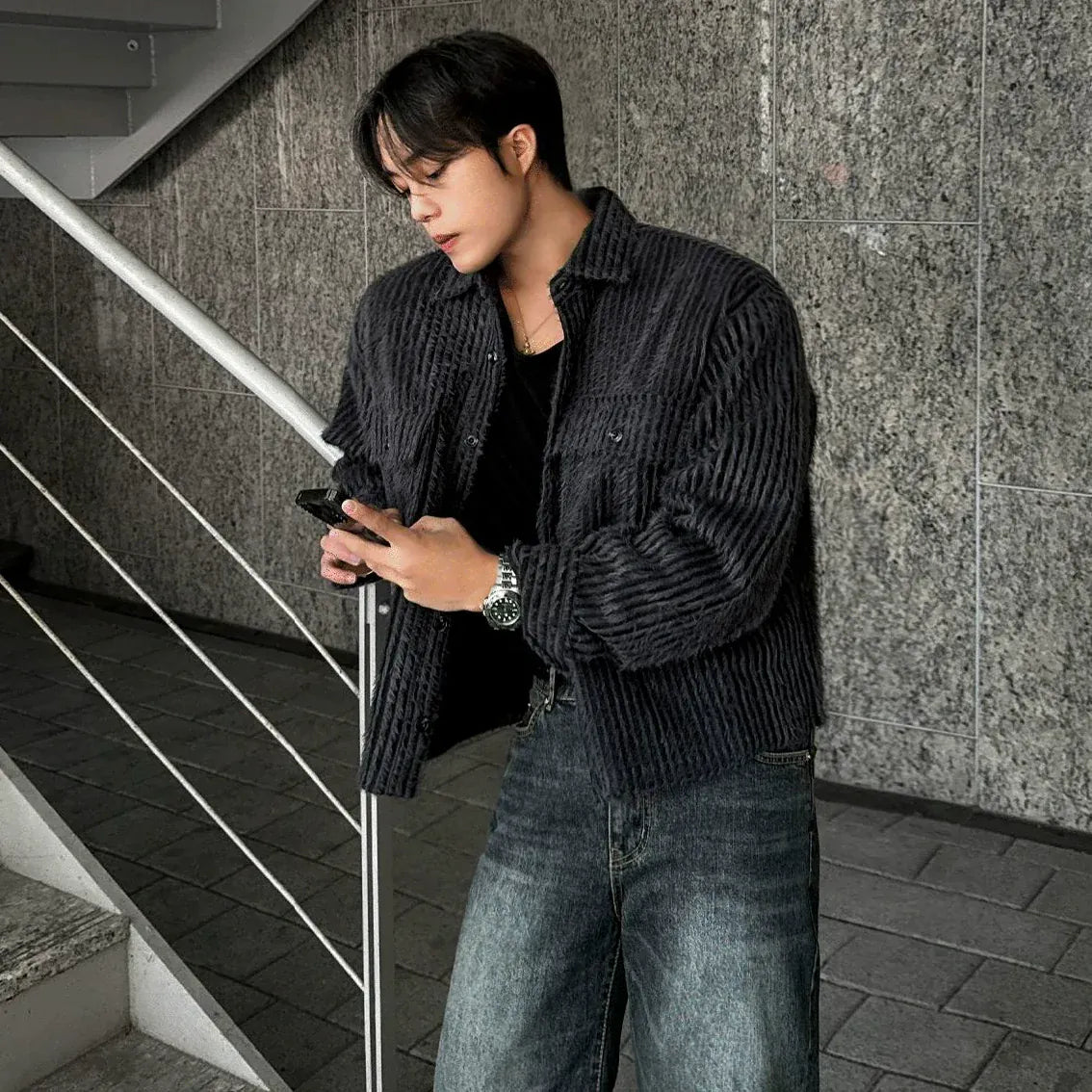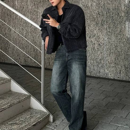 RT No. 5416 DARK GRAY KNITTED CARDIGAN JACKET