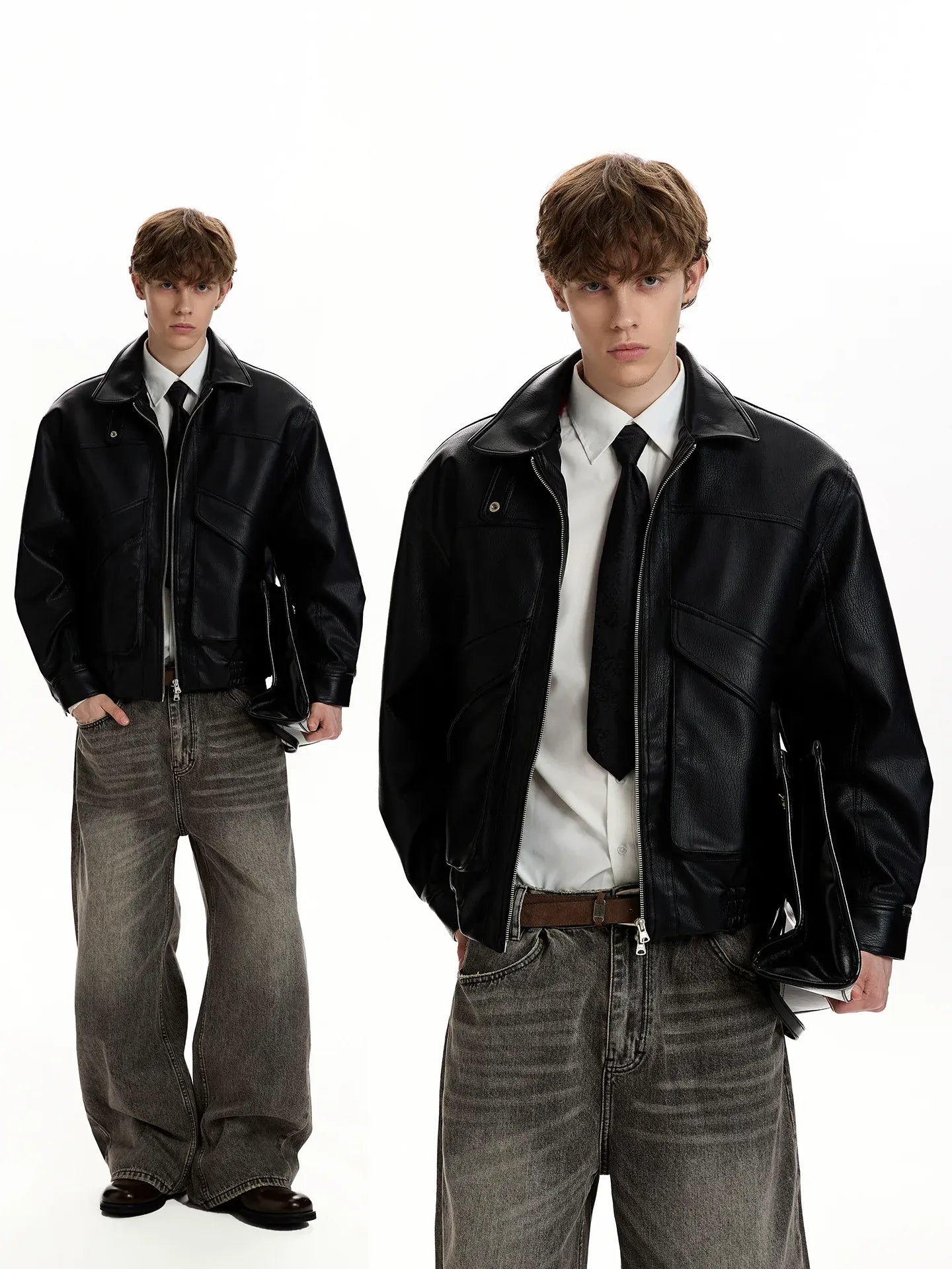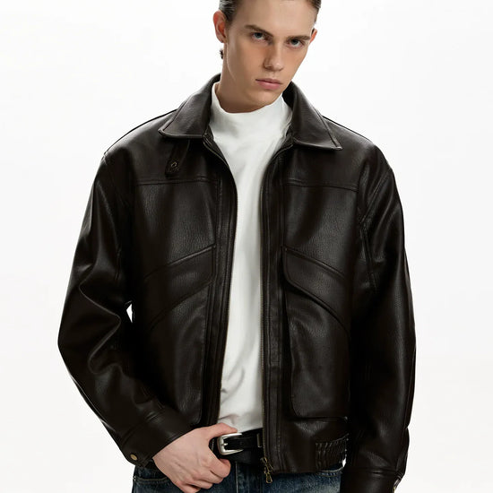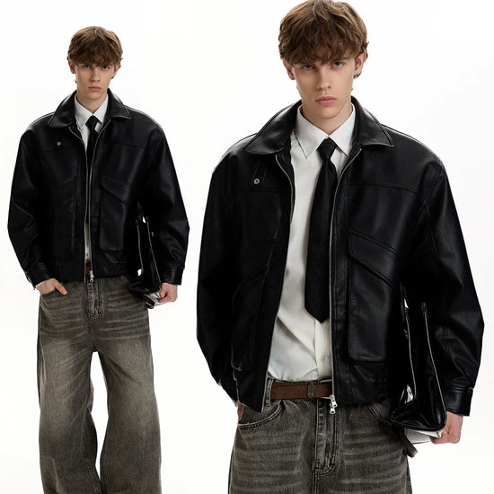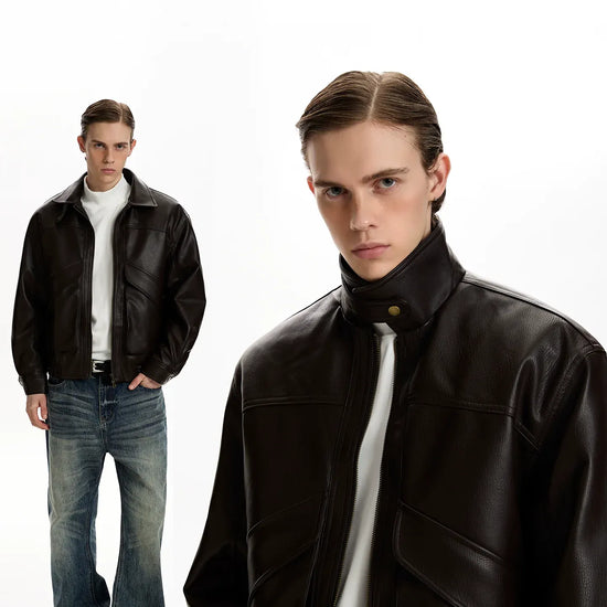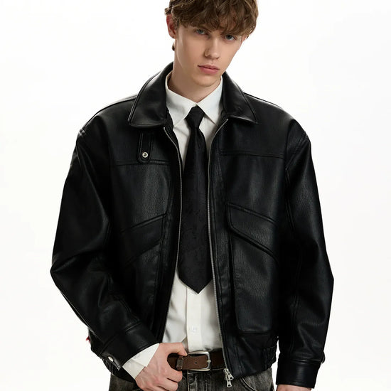 RT No. 10042 LEATHER ZIP-UP JACKET