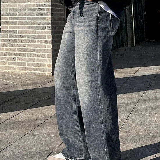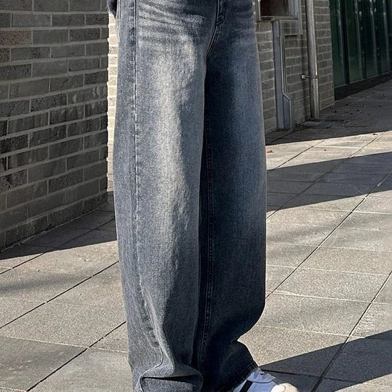 RT No. 7002 WASHED BLACK WIDE STRAIGHT DENIM JEANS