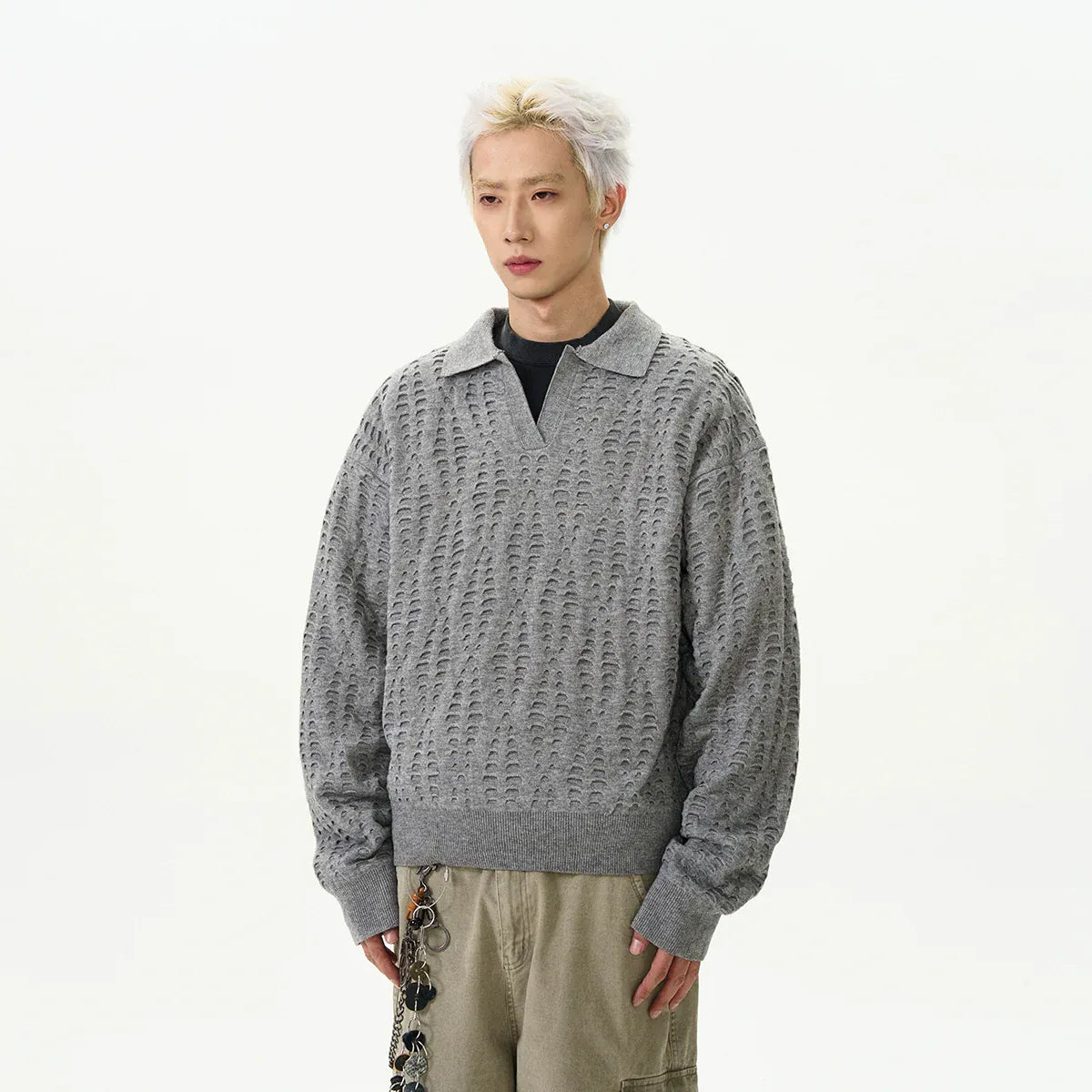 RT No. 11061 KNITTED HENLEY COLLAR LONGSLEEVE SHIRT