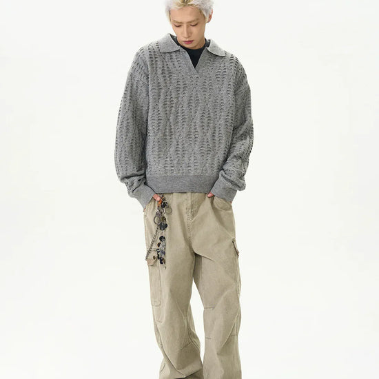 RT No. 6151 KNITTED HALF ZIP-UP COLLAR SWEATER
