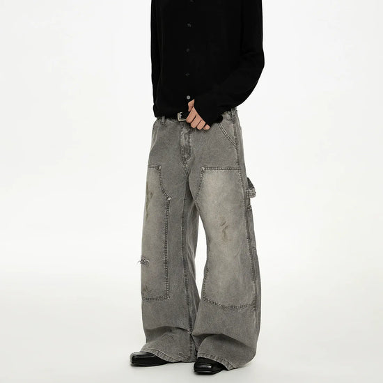 RT No. 7002 WASHED BLACK WIDE STRAIGHT DENIM JEANS