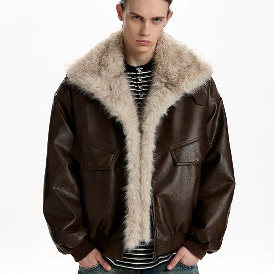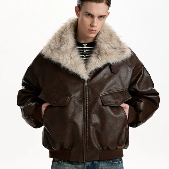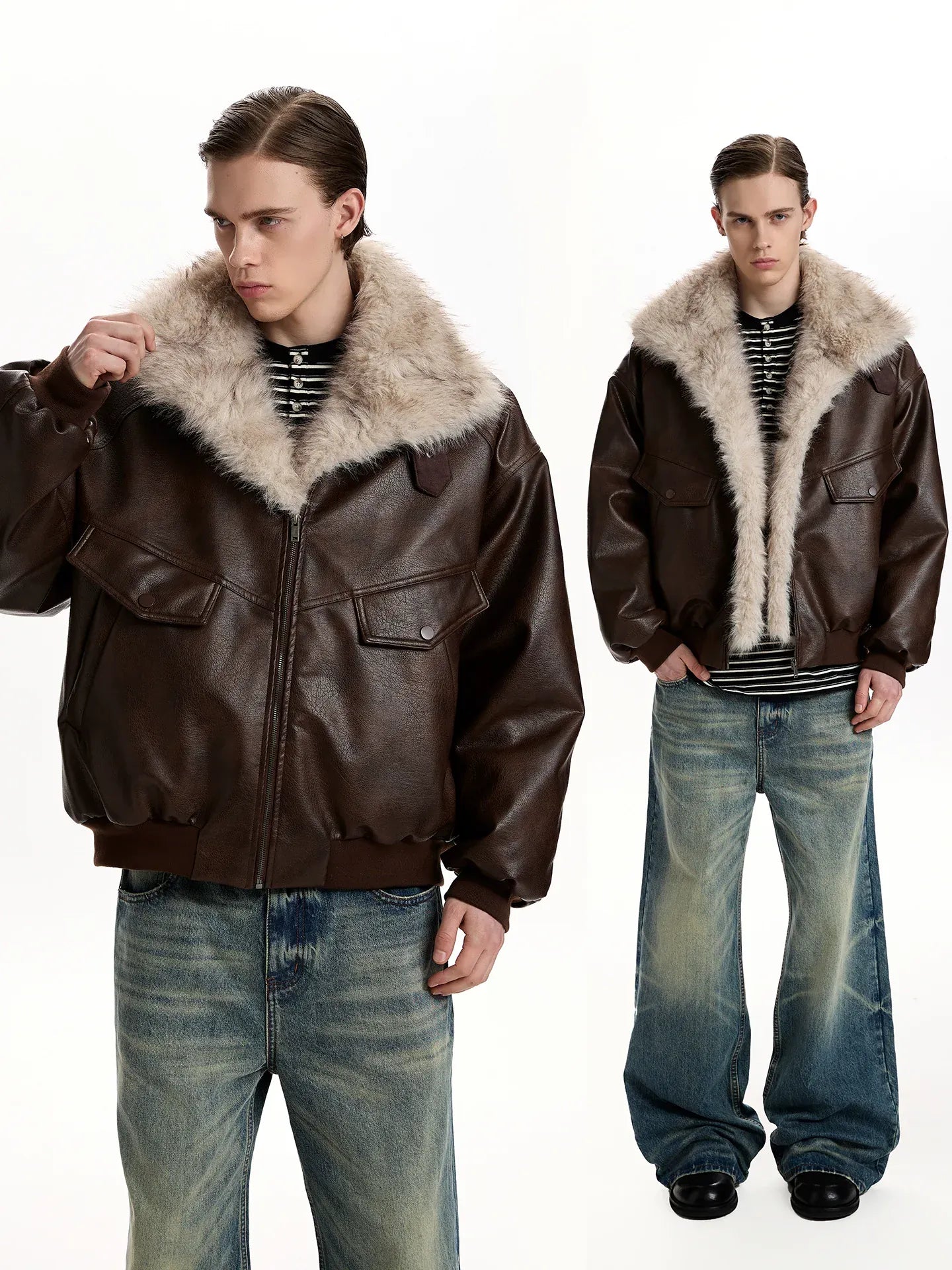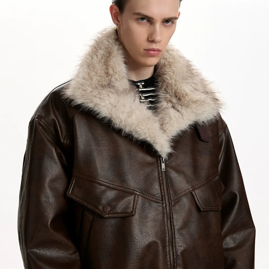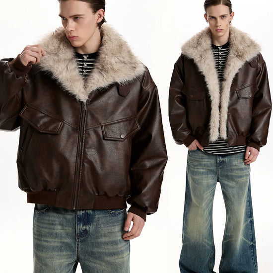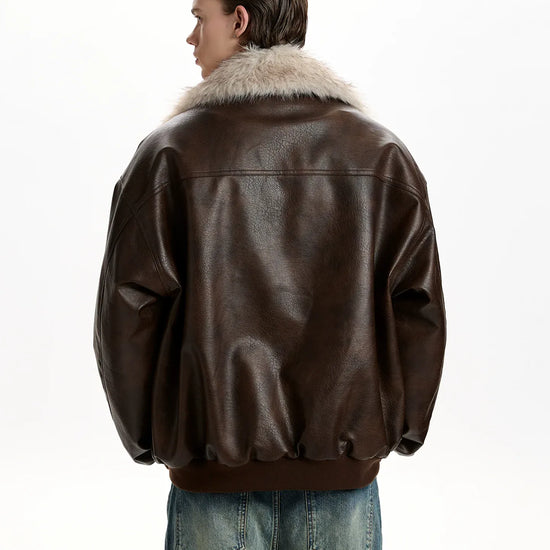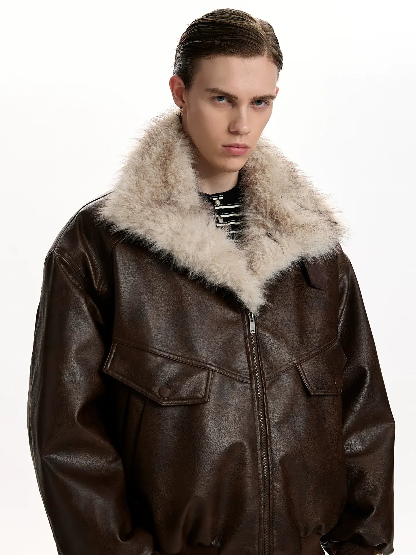 RT No. 50108 WOLF COLLAR LEATHER JACKET