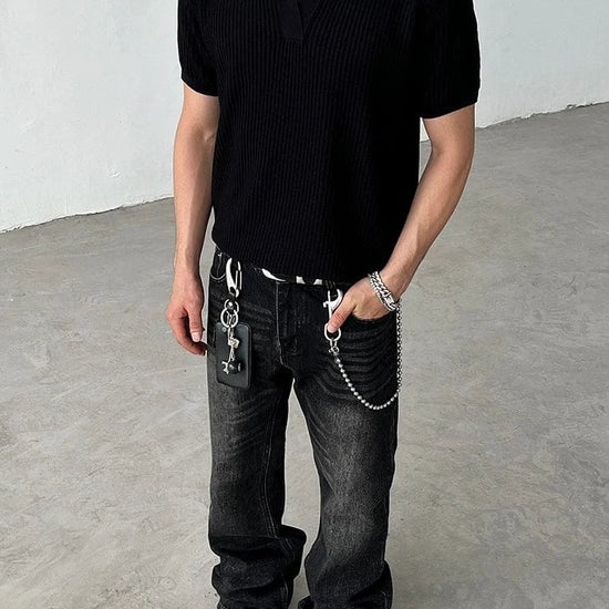 RT No. 7002 WASHED BLACK WIDE STRAIGHT DENIM JEANS