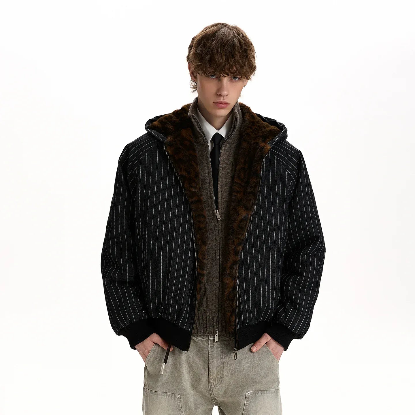 RT No. 50235 WOLF STRIPED ZIPPER JACKET