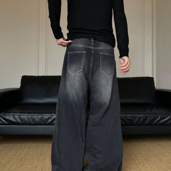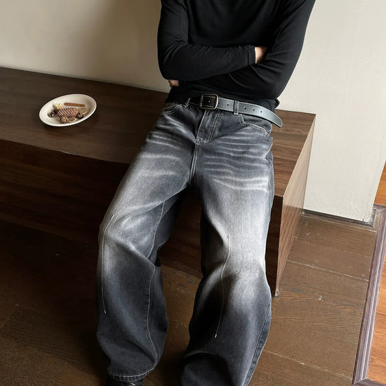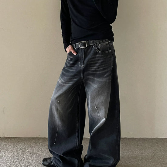 RT No. 7002 WASHED BLACK WIDE STRAIGHT DENIM JEANS