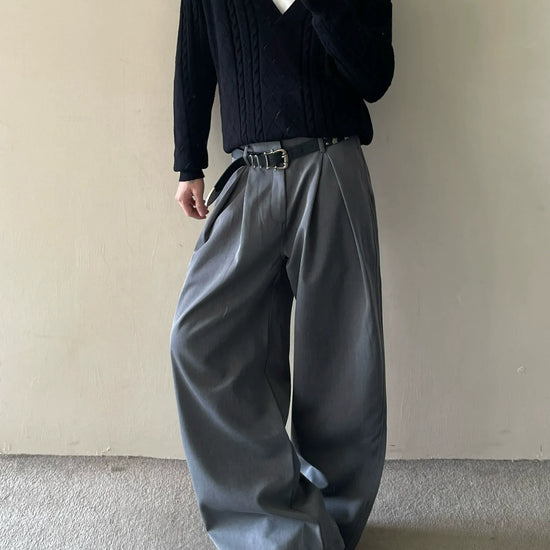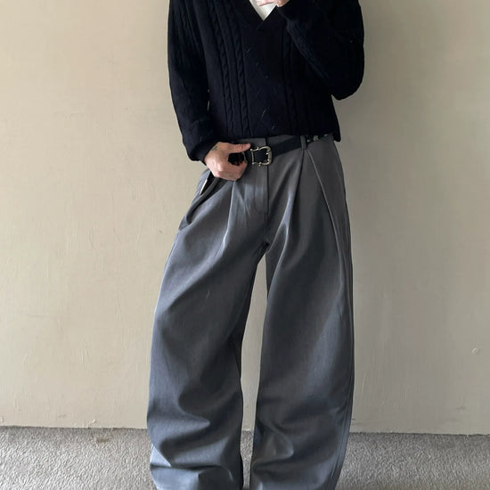 RT No. 50257 GRAY DOUBLE PLEATED SUIT PANTS
