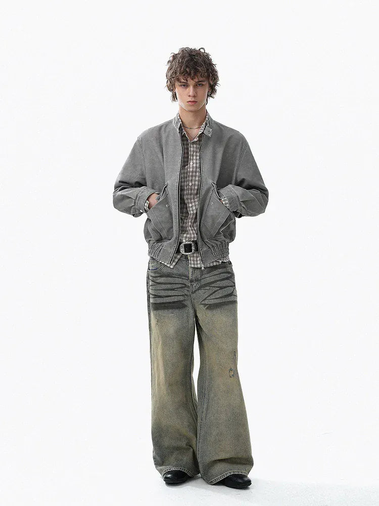RT No. 11644 PLEATED FOLDED RELAX STRAIGHT JEANS