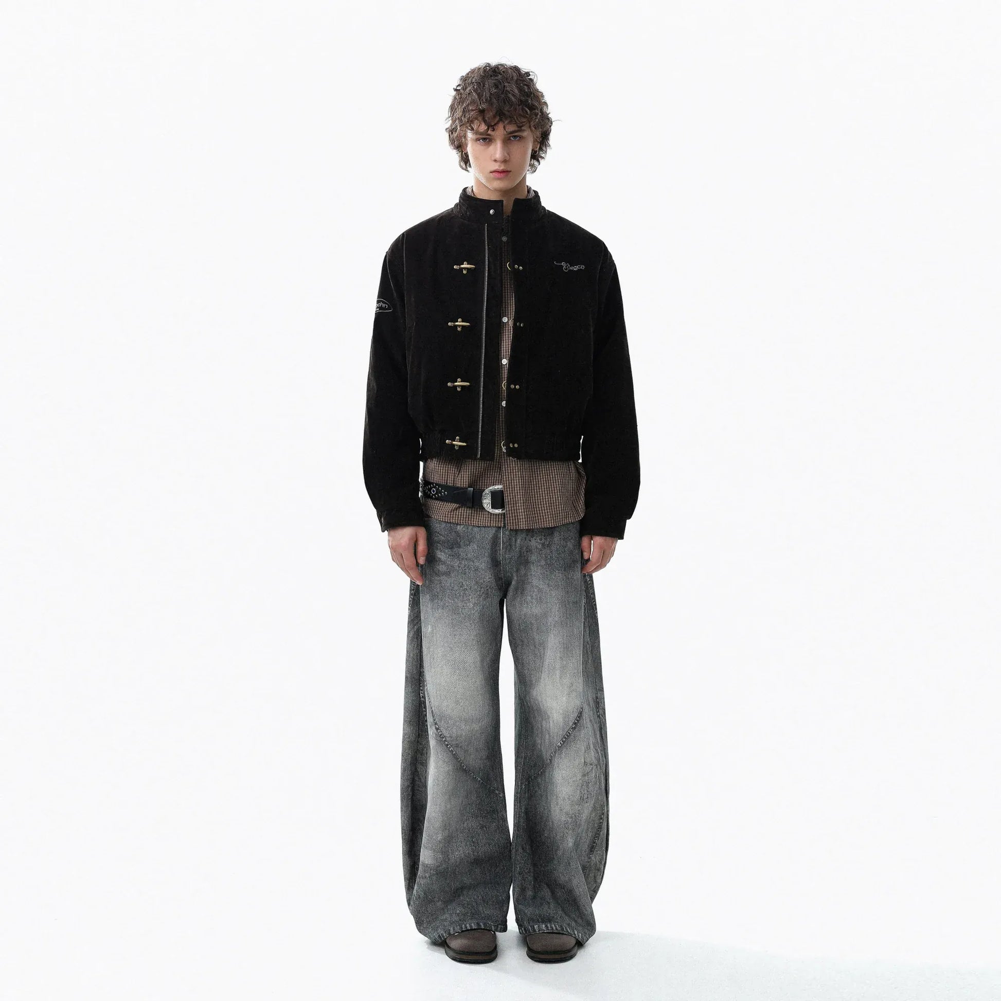 RT No. 7002 WASHED BLACK WIDE STRAIGHT DENIM JEANS