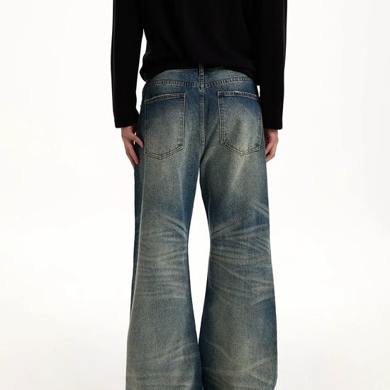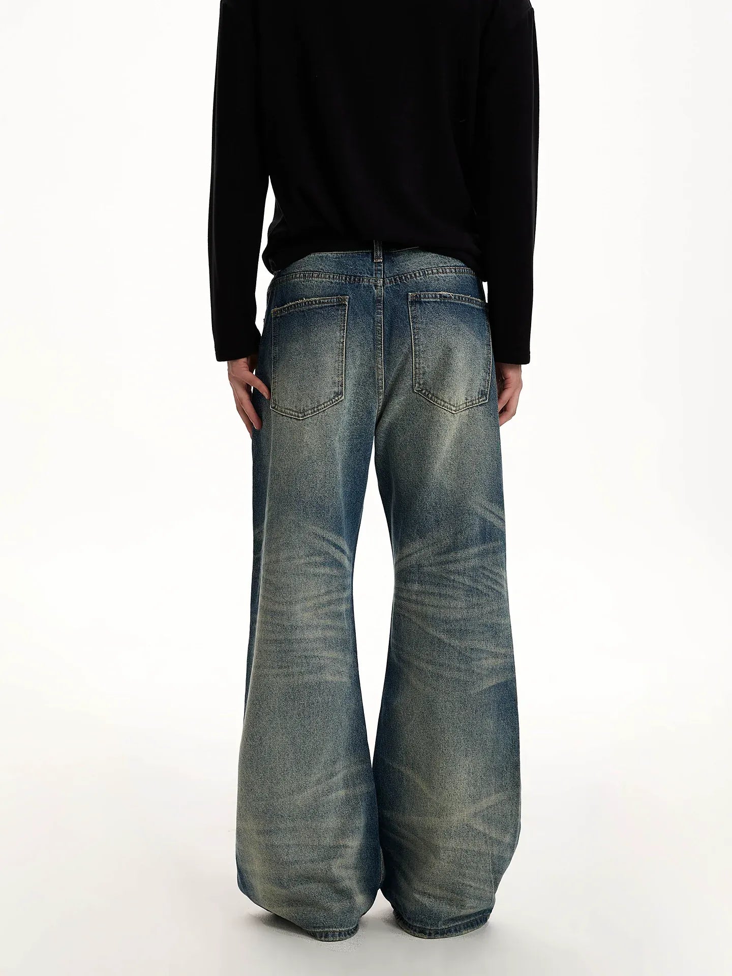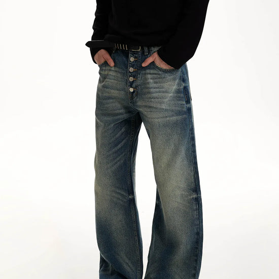 RT No. 12059 WASHED BLUE RELAX STRAIGHT DENIM JEANS